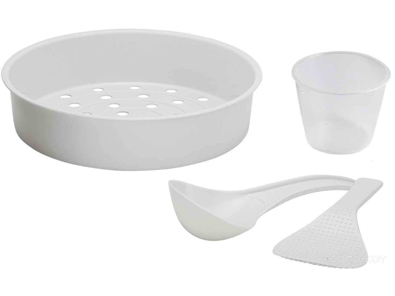 - Дополнительные принадлежности контейнер-пароварка, плоская ложка, столовая ложка