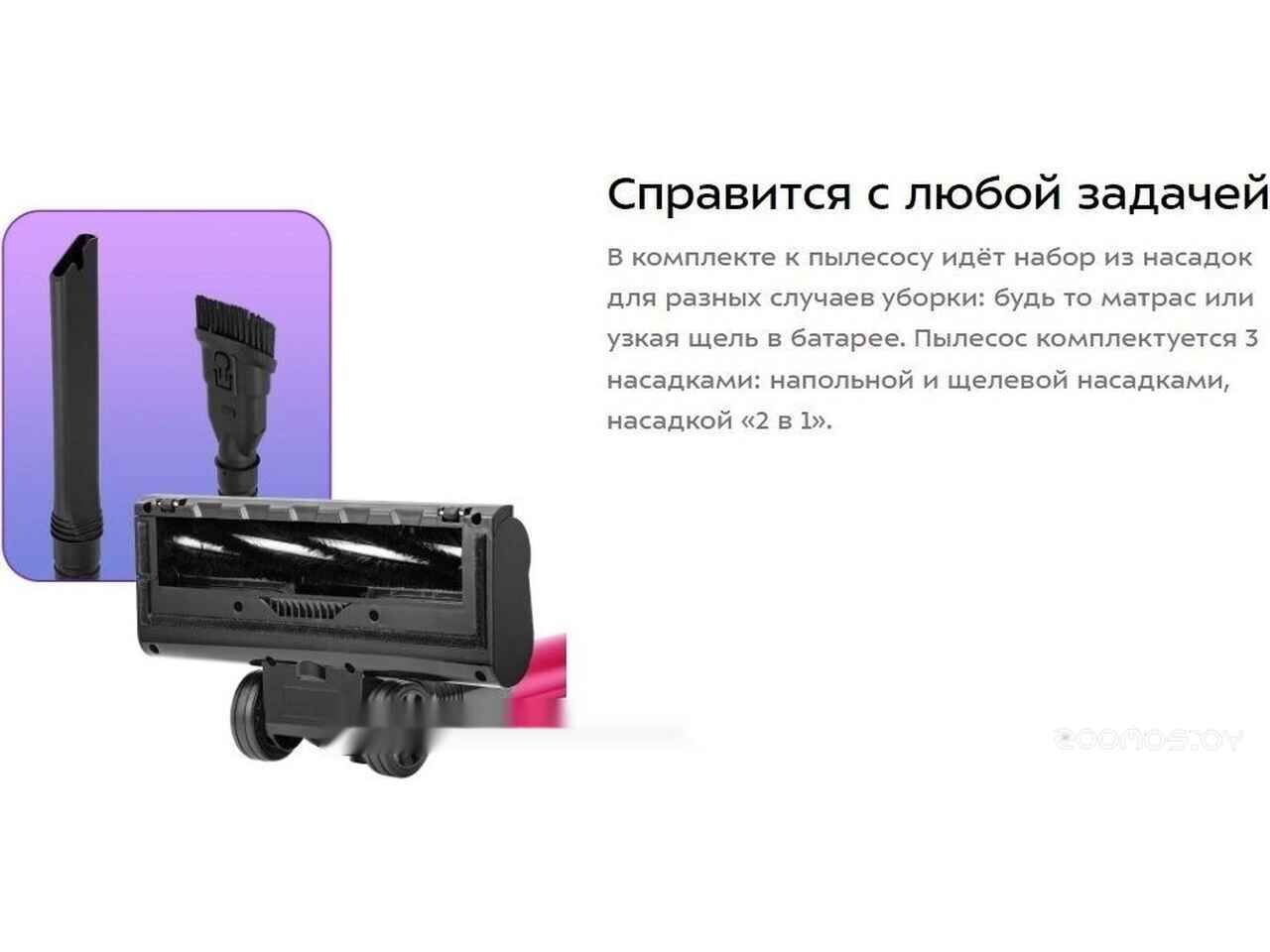 - Насадки в комплекте щелевая, щетка для мебели