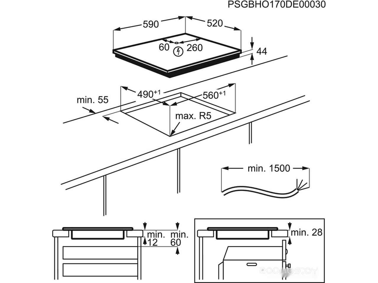 - Ширина для встраивания 56 см