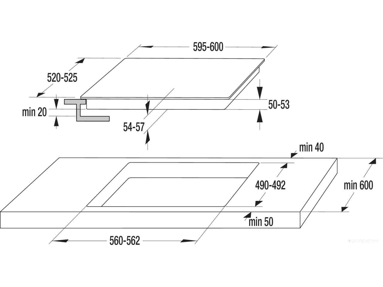 - Ширина для встраивания 56 см