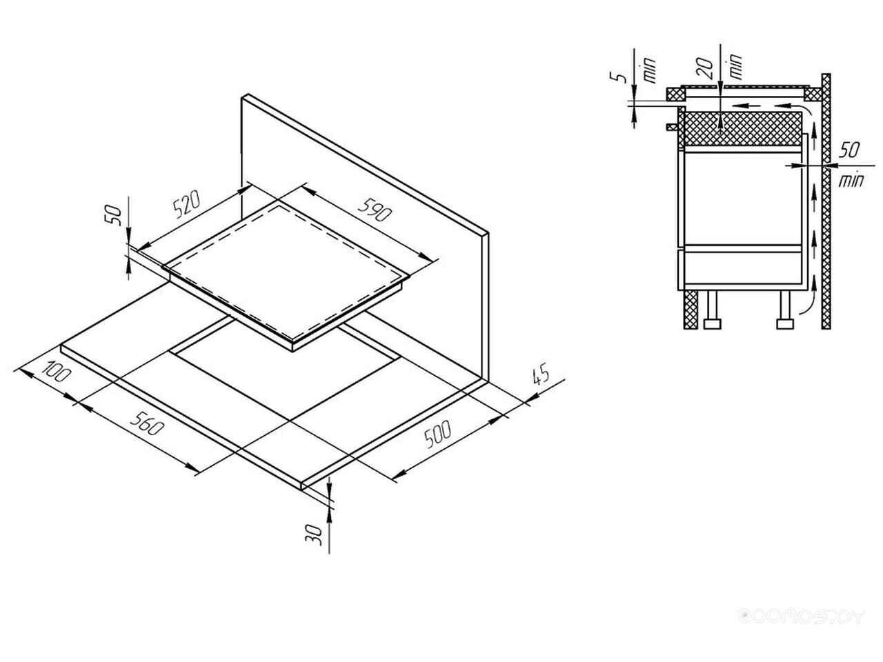 - Ширина для встраивания 56 см