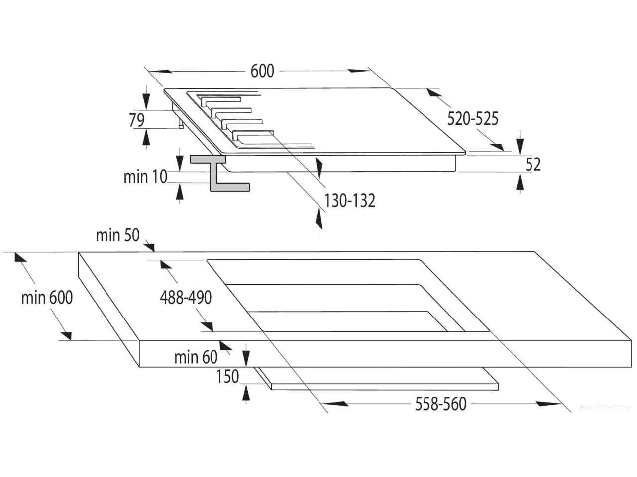 - Ширина для встраивания 56 см