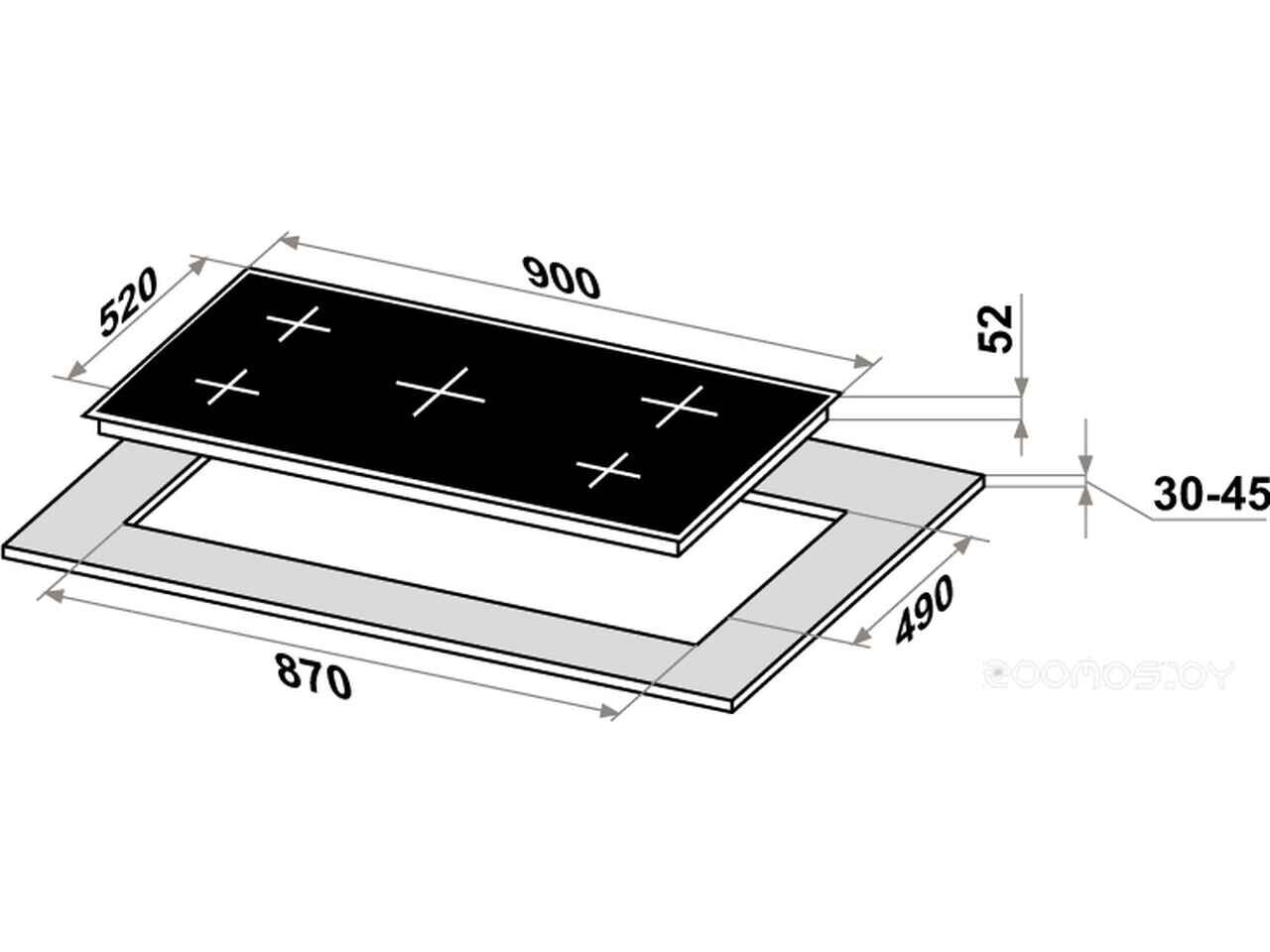 - Конфорок с овальной/прямоугольной зоной нагрева 1