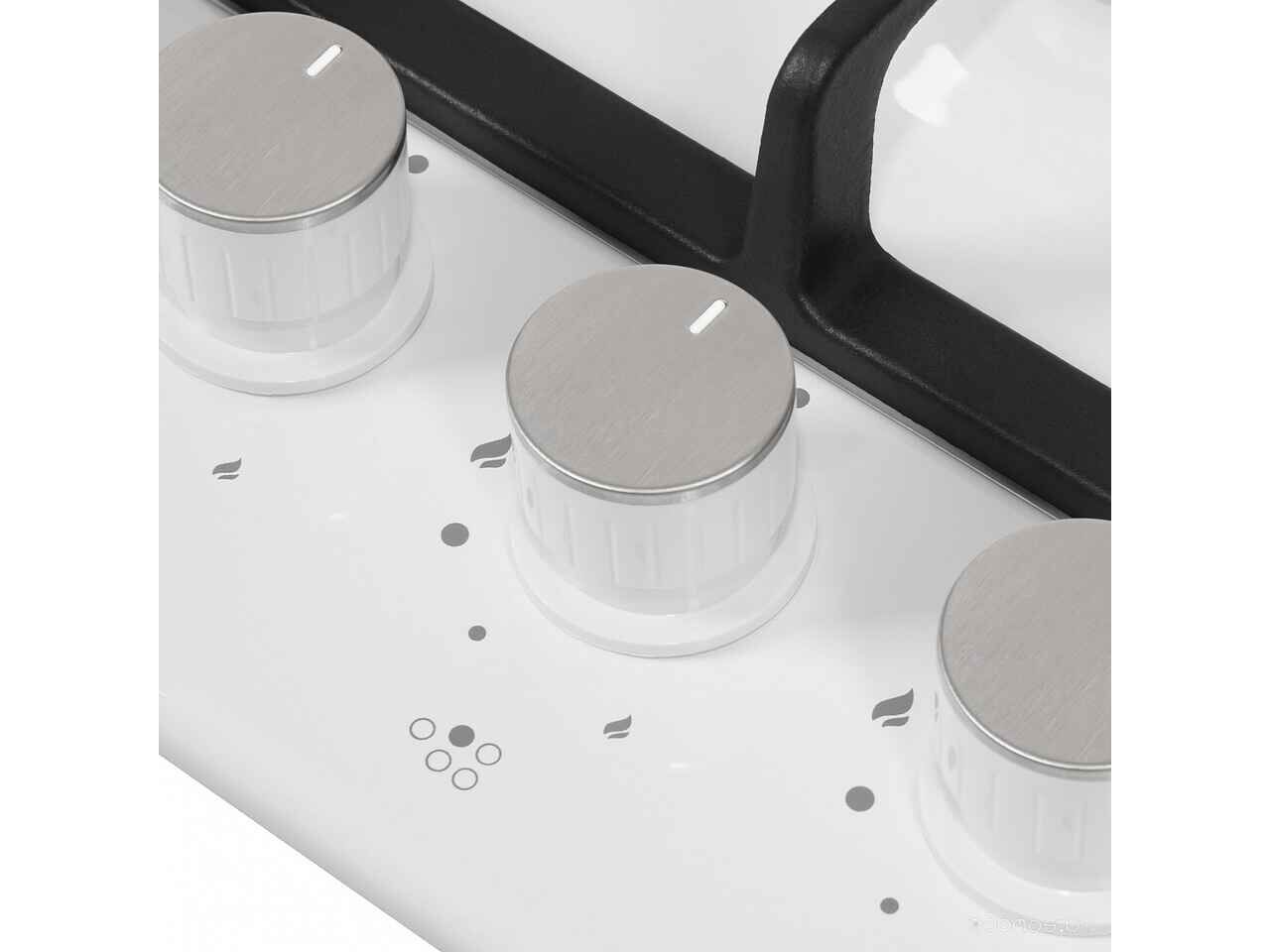 - Цвет панели конфорок белый