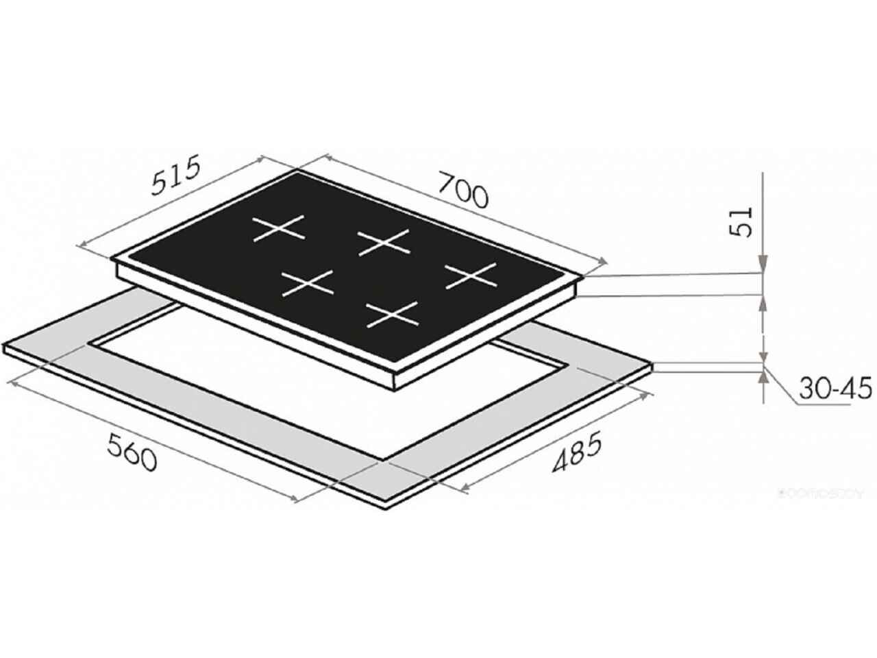 - Ширина для встраивания 56 см