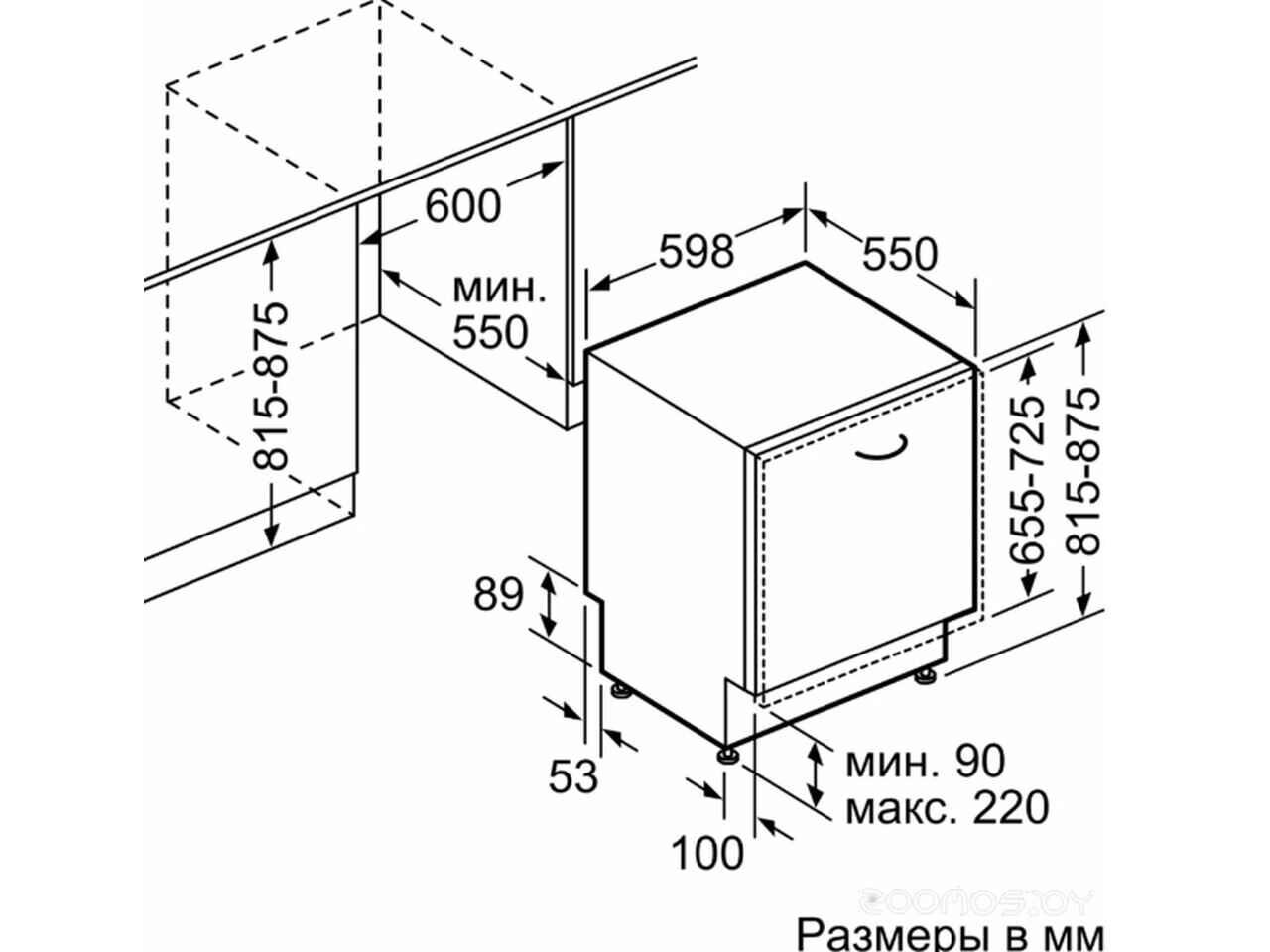 - Ширина ниши для встраивания 60 см