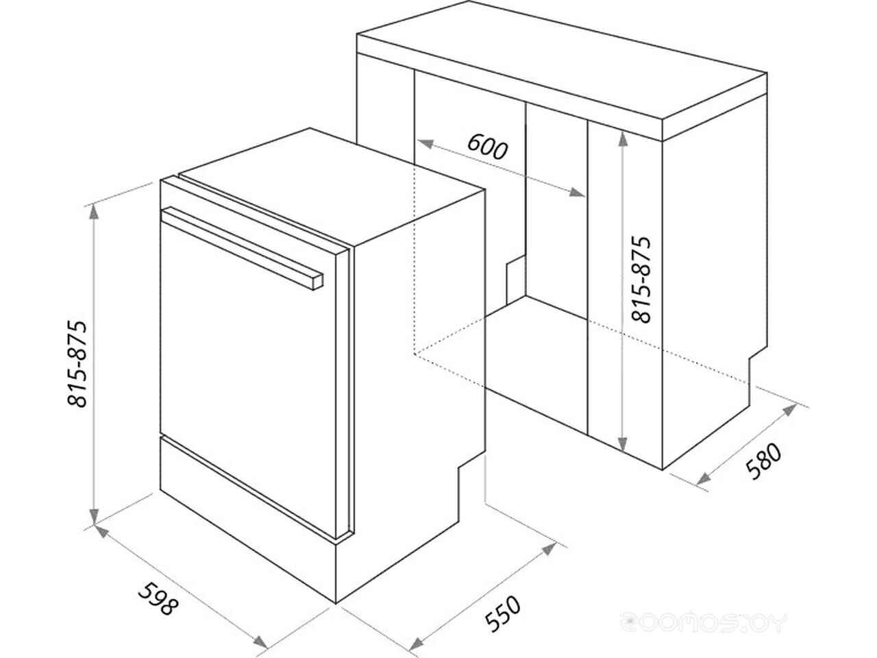 - Ширина ниши для встраивания 60 см