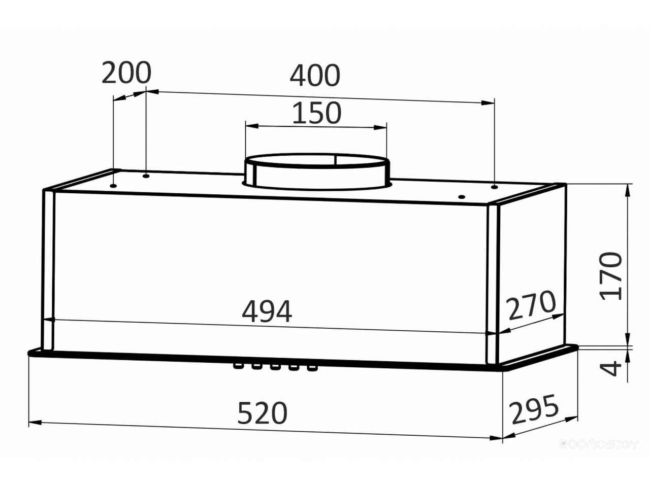 - Диаметр патрубка воздуховода 150 мм