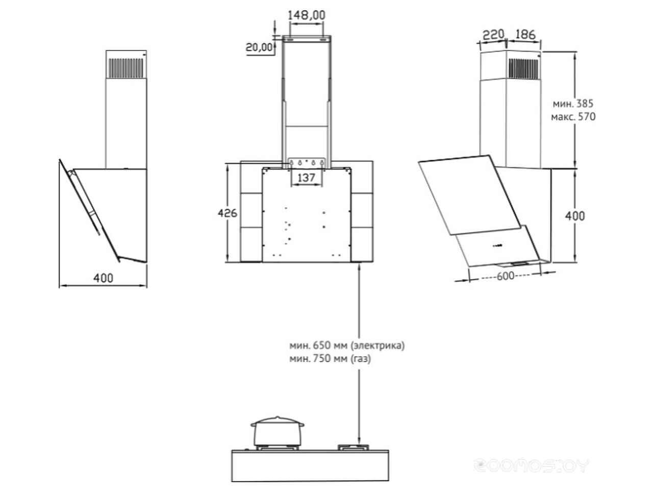 - Диаметр патрубка воздуховода 150 мм