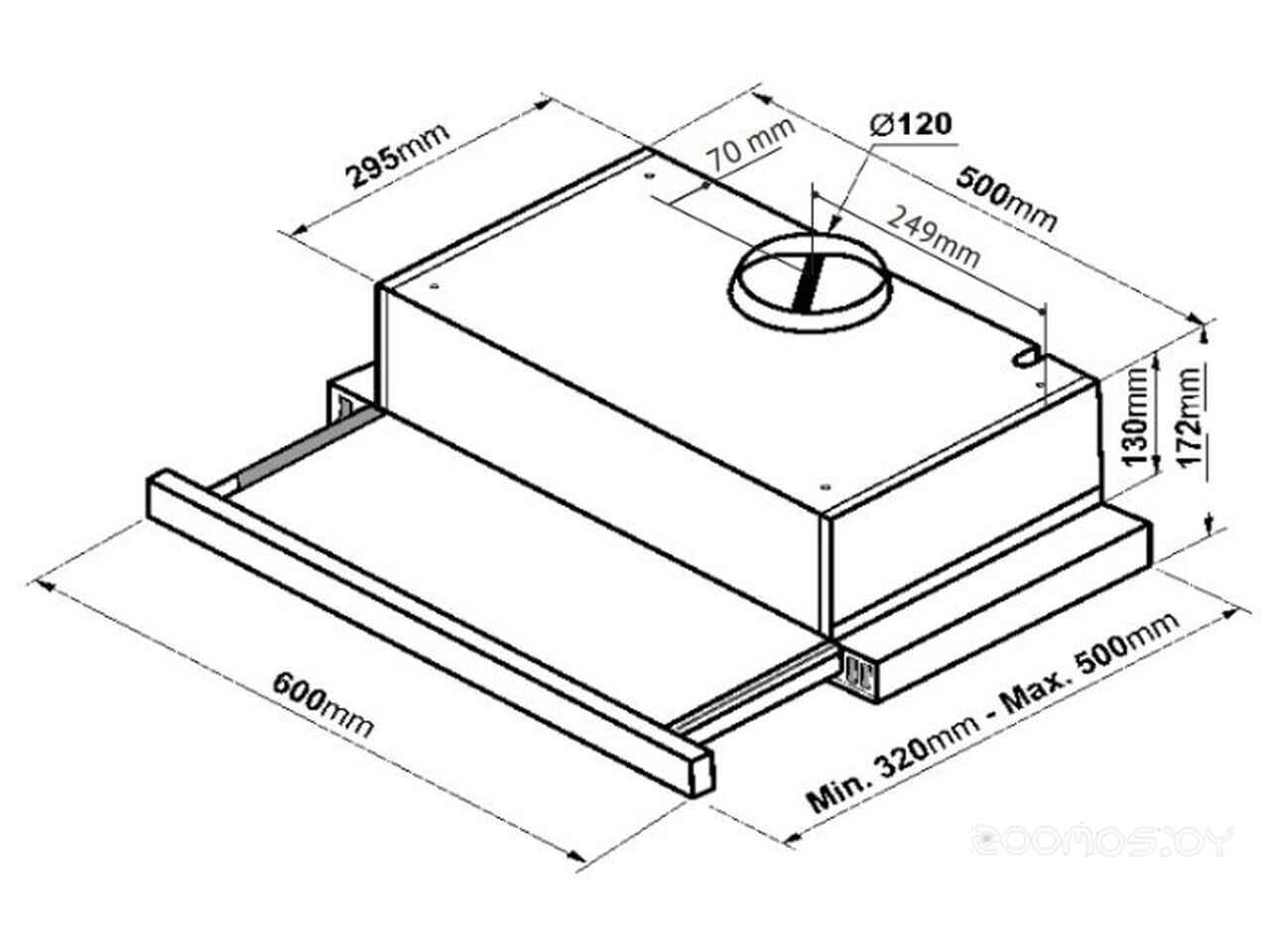 - Диаметр патрубка воздуховода 120 мм