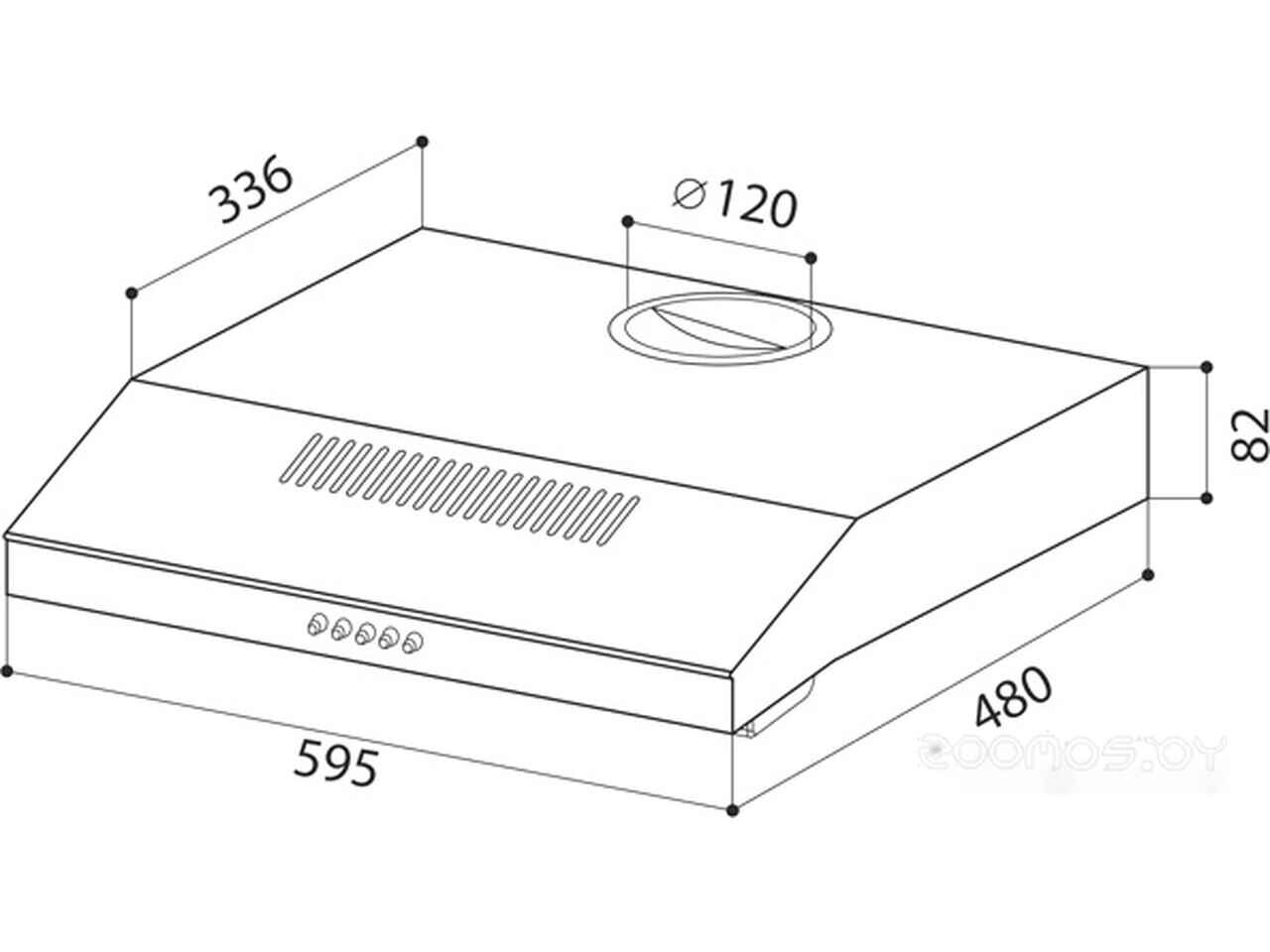 - Диаметр патрубка воздуховода 120 мм
