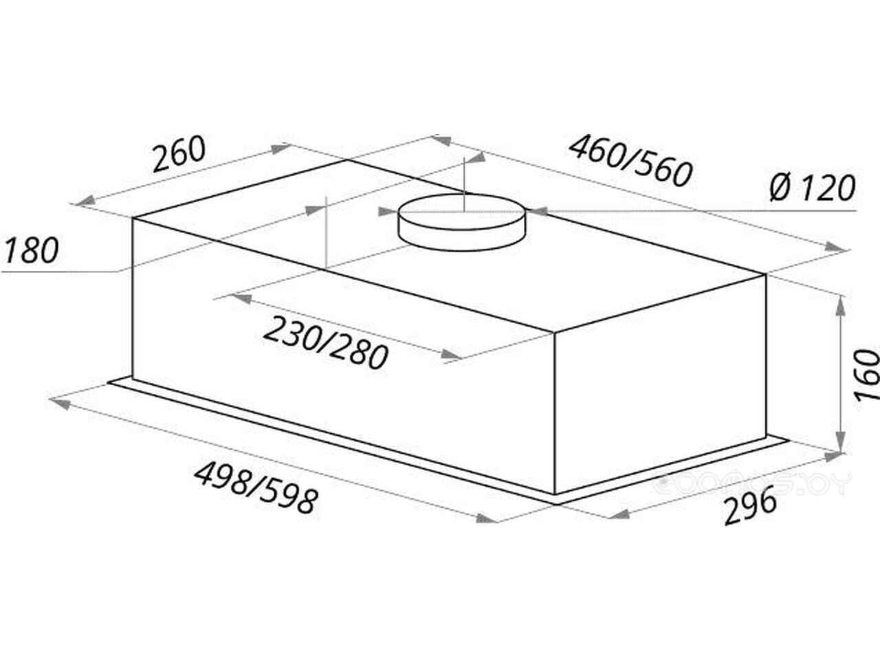- Диаметр патрубка воздуховода 120 мм