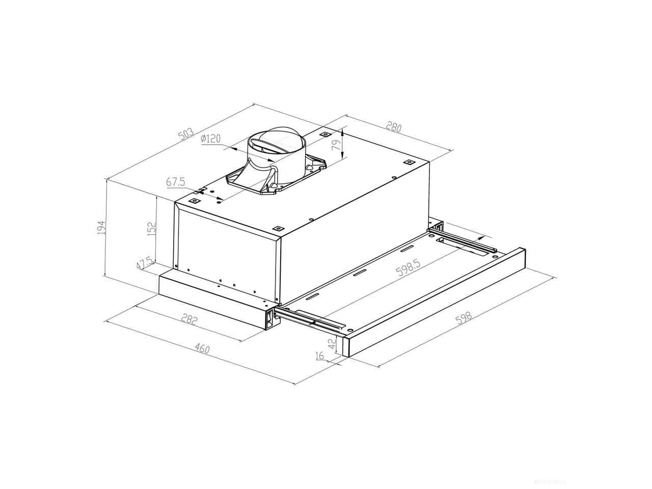 - Диаметр патрубка воздуховода 120 мм