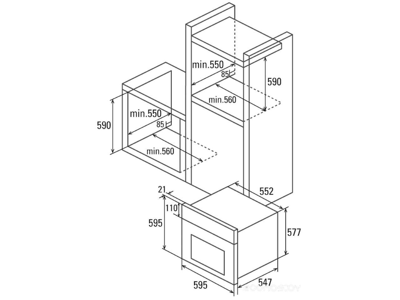 - Глубина 55 см