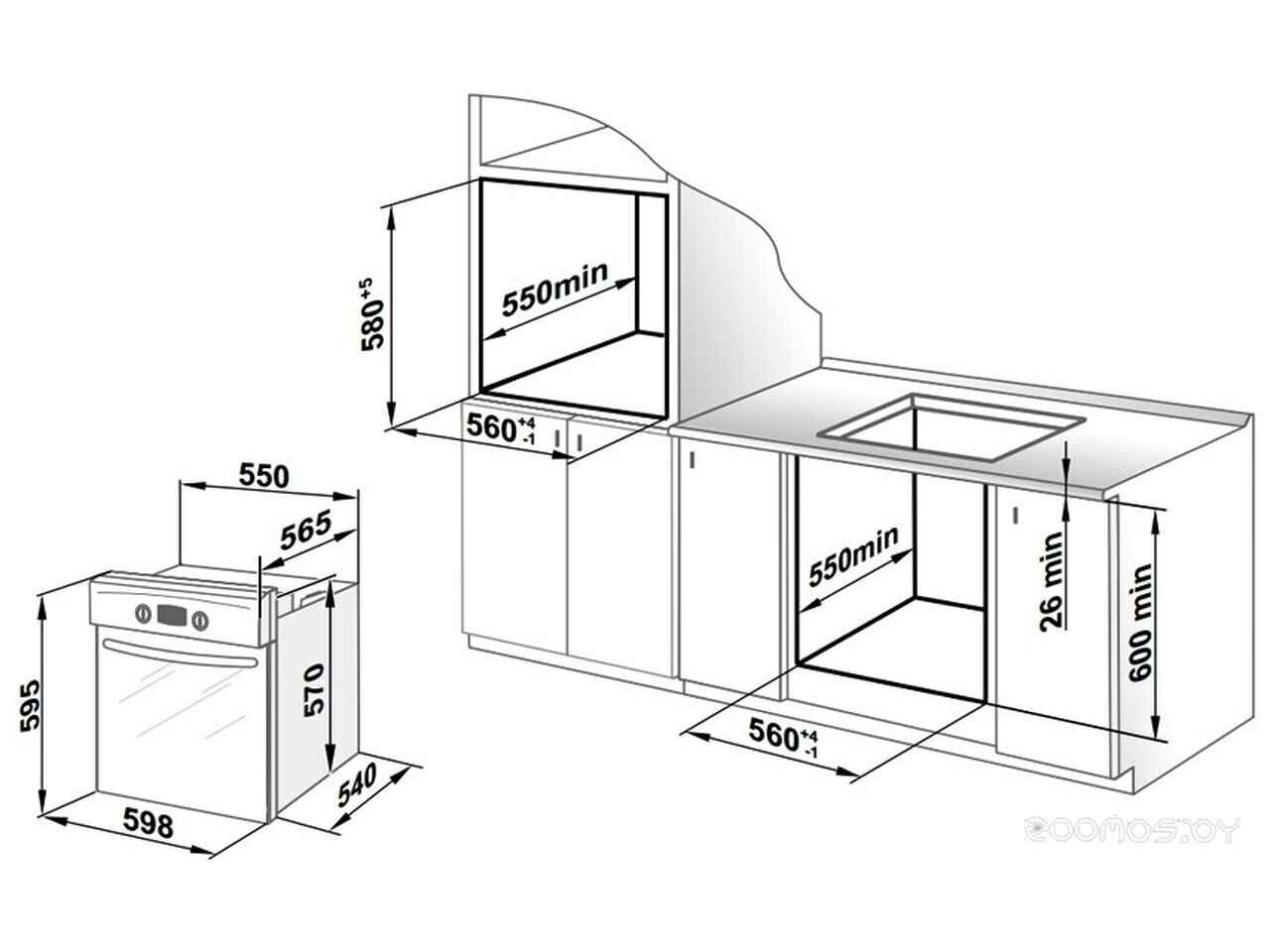 - Ширина ниши 55 см