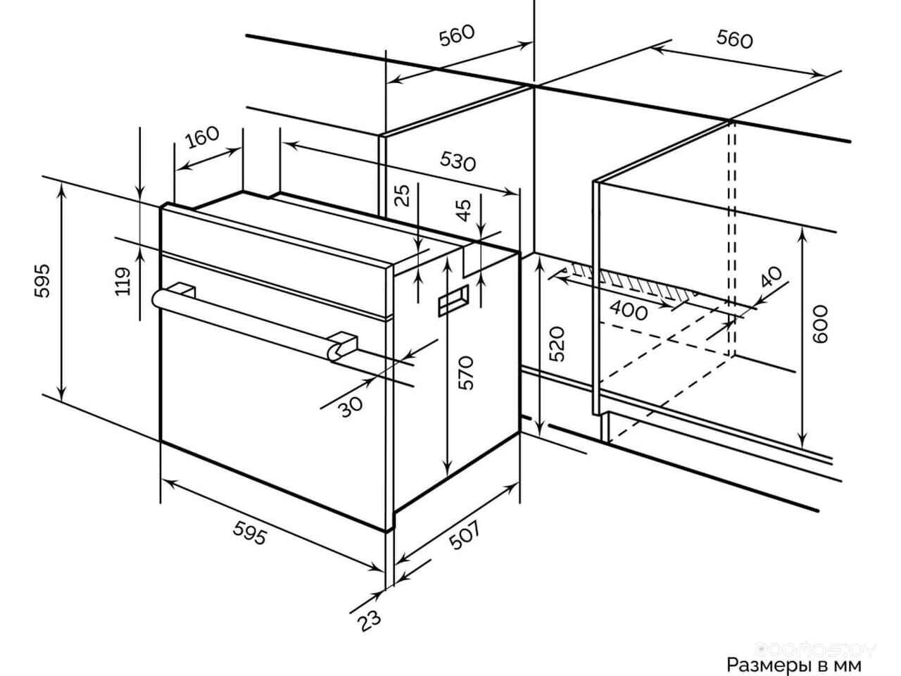 - Глубина ниши 56 см
