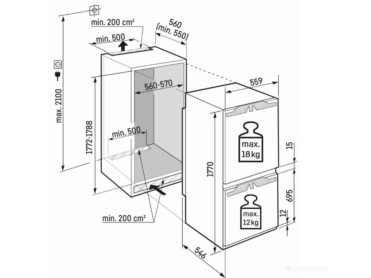 - Высота ниши для встраивания 177.2 см