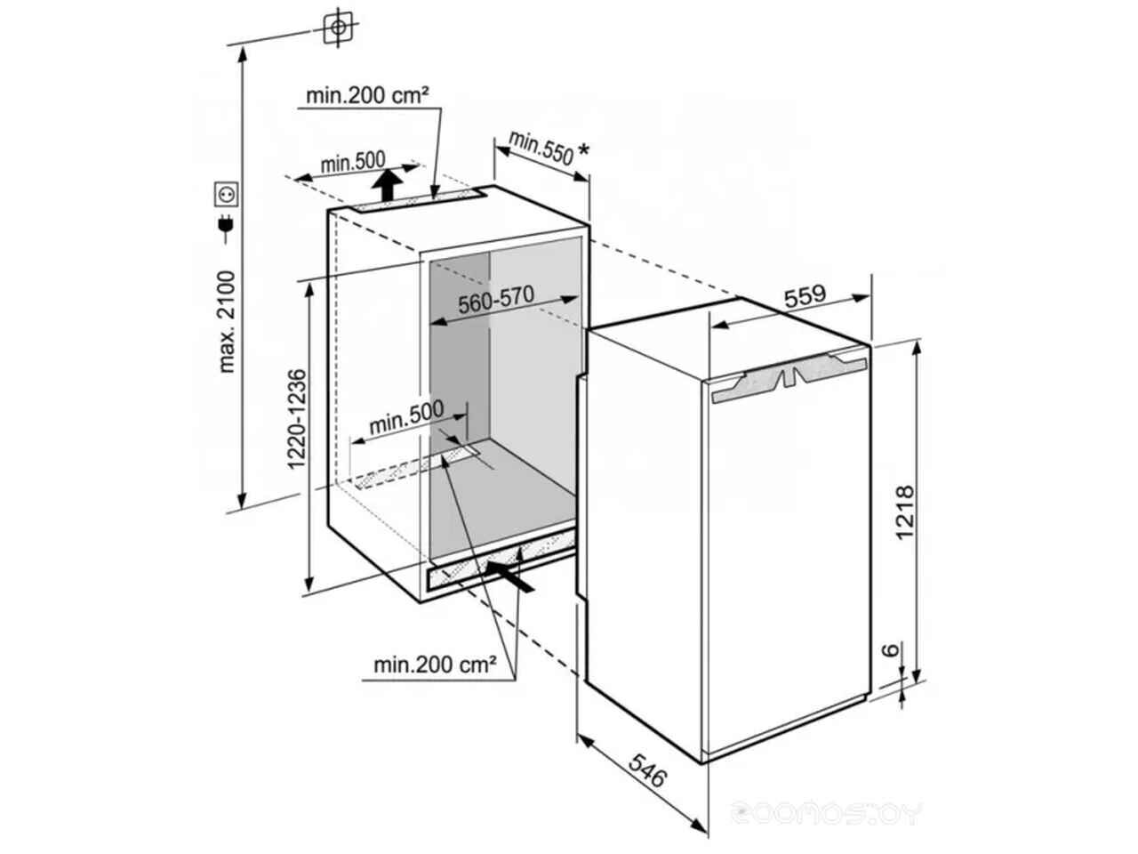 - Глубина ниши для встраивания 55 см