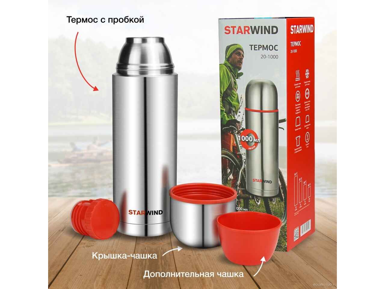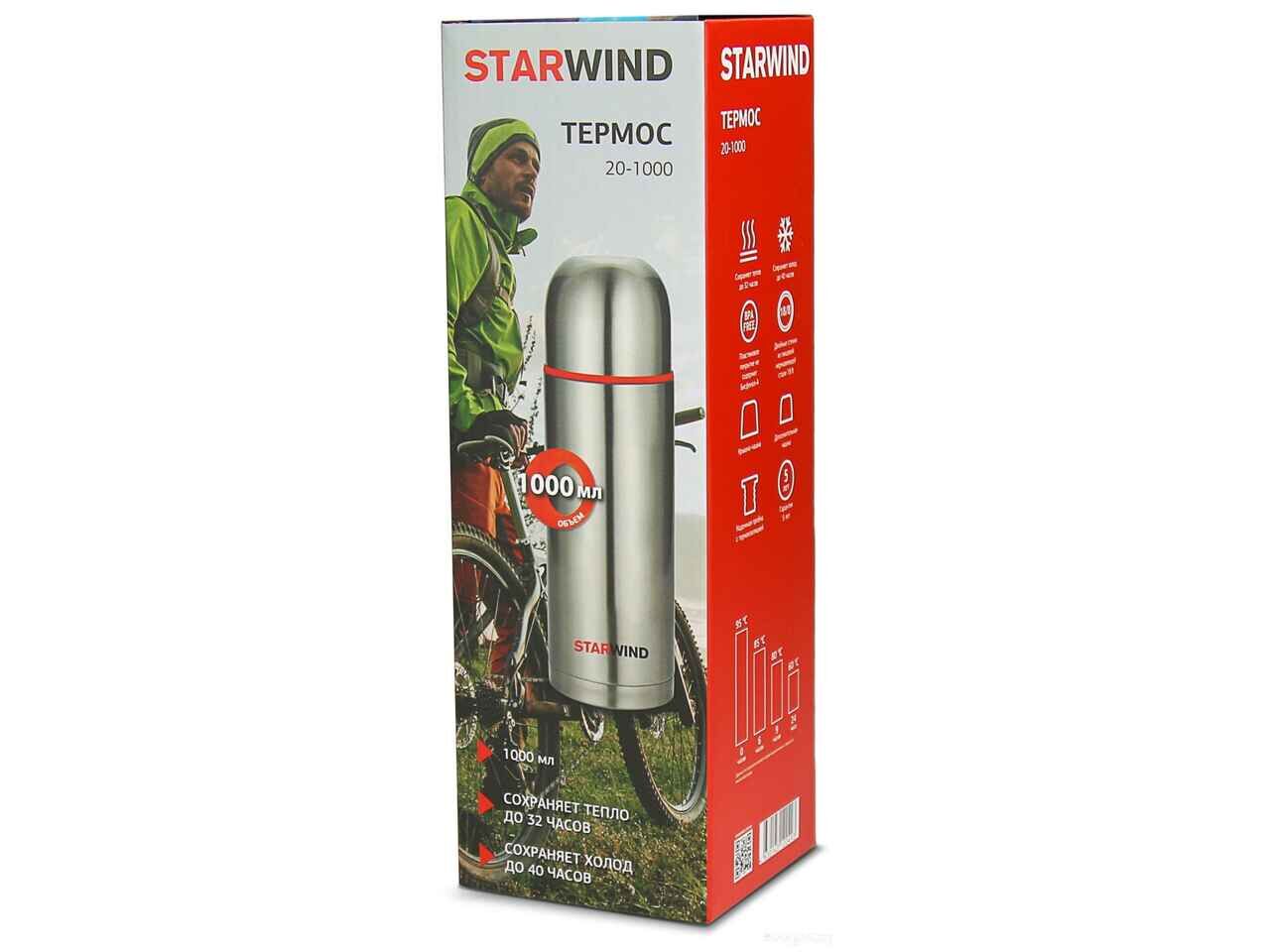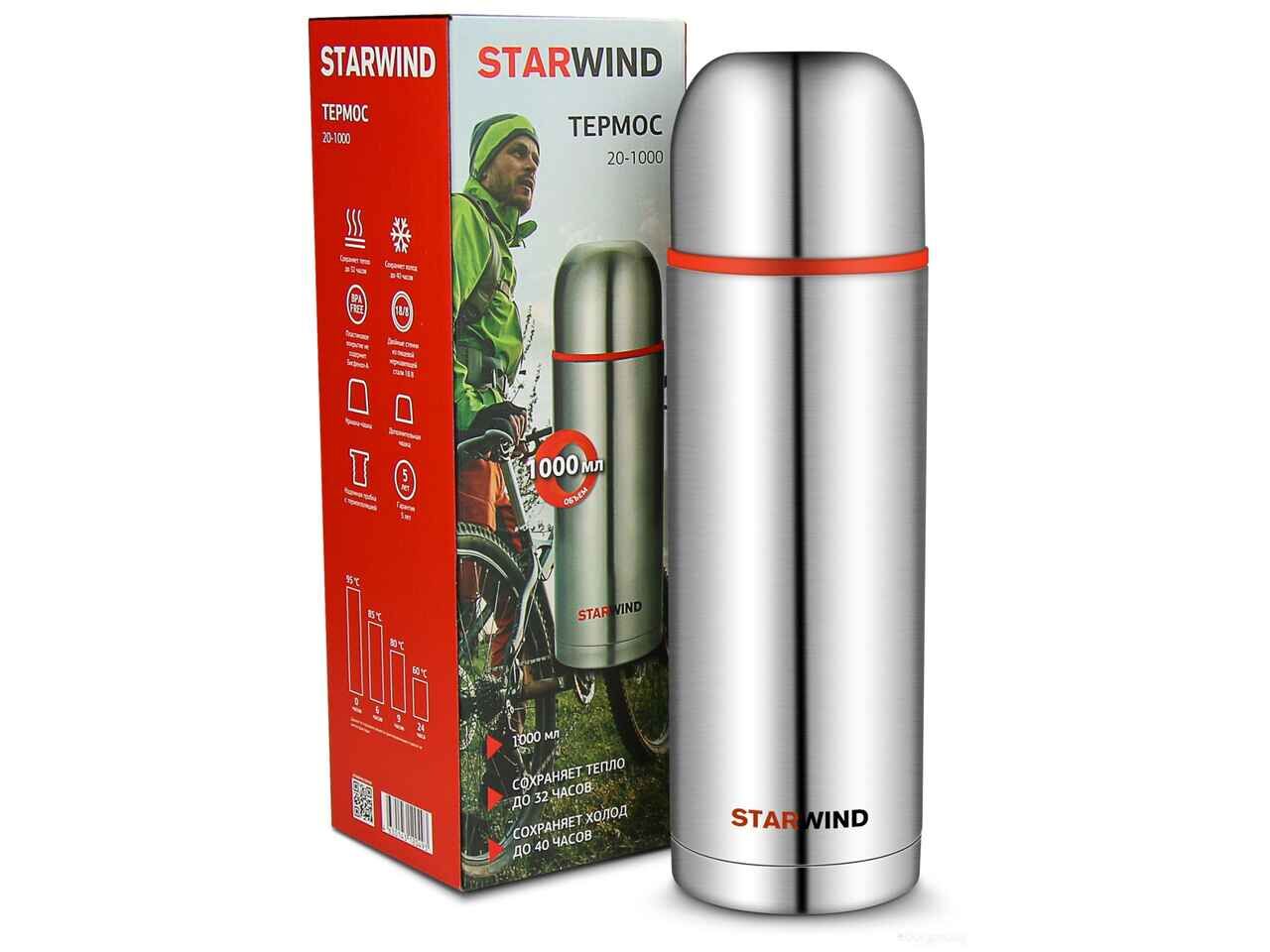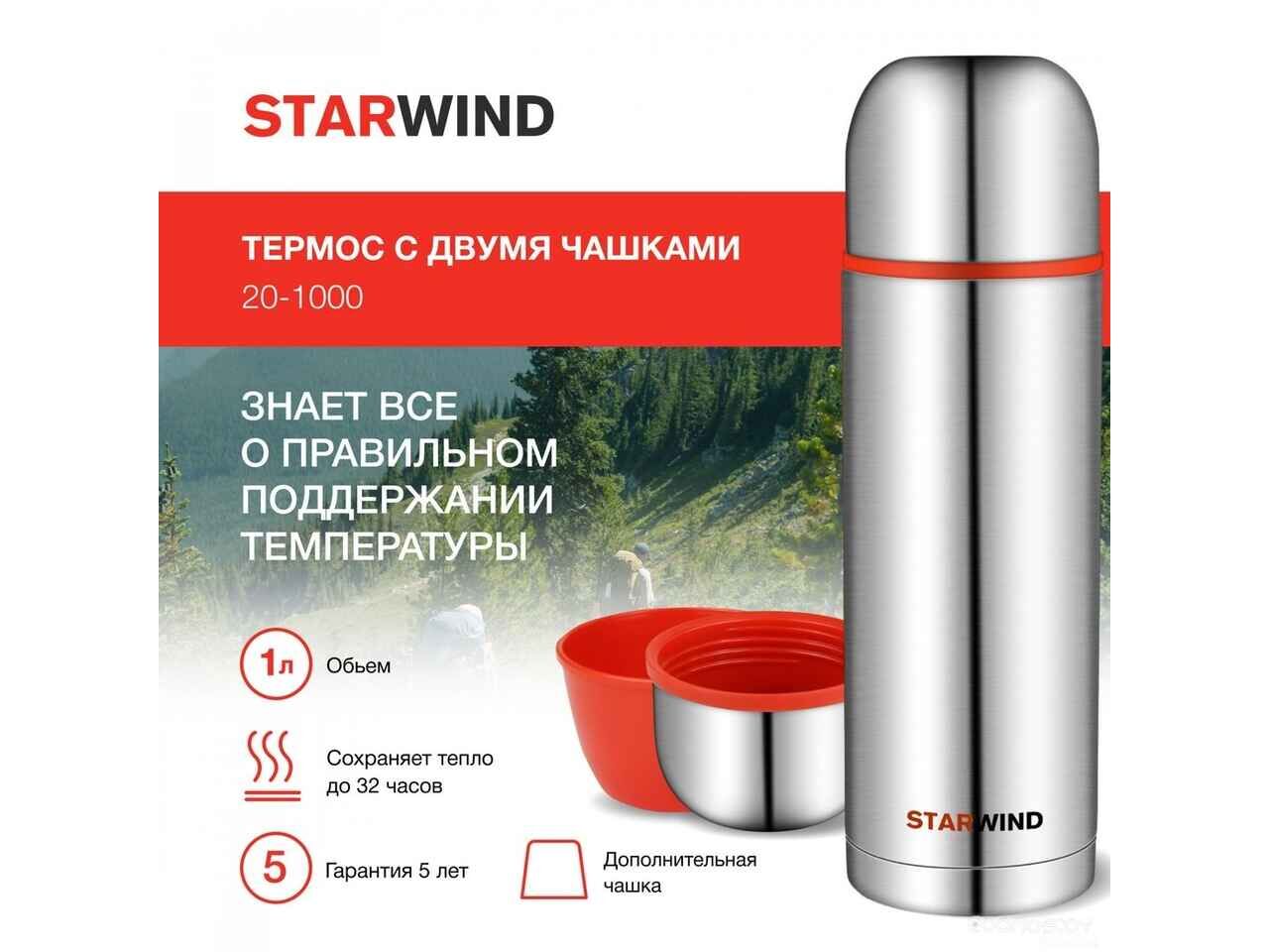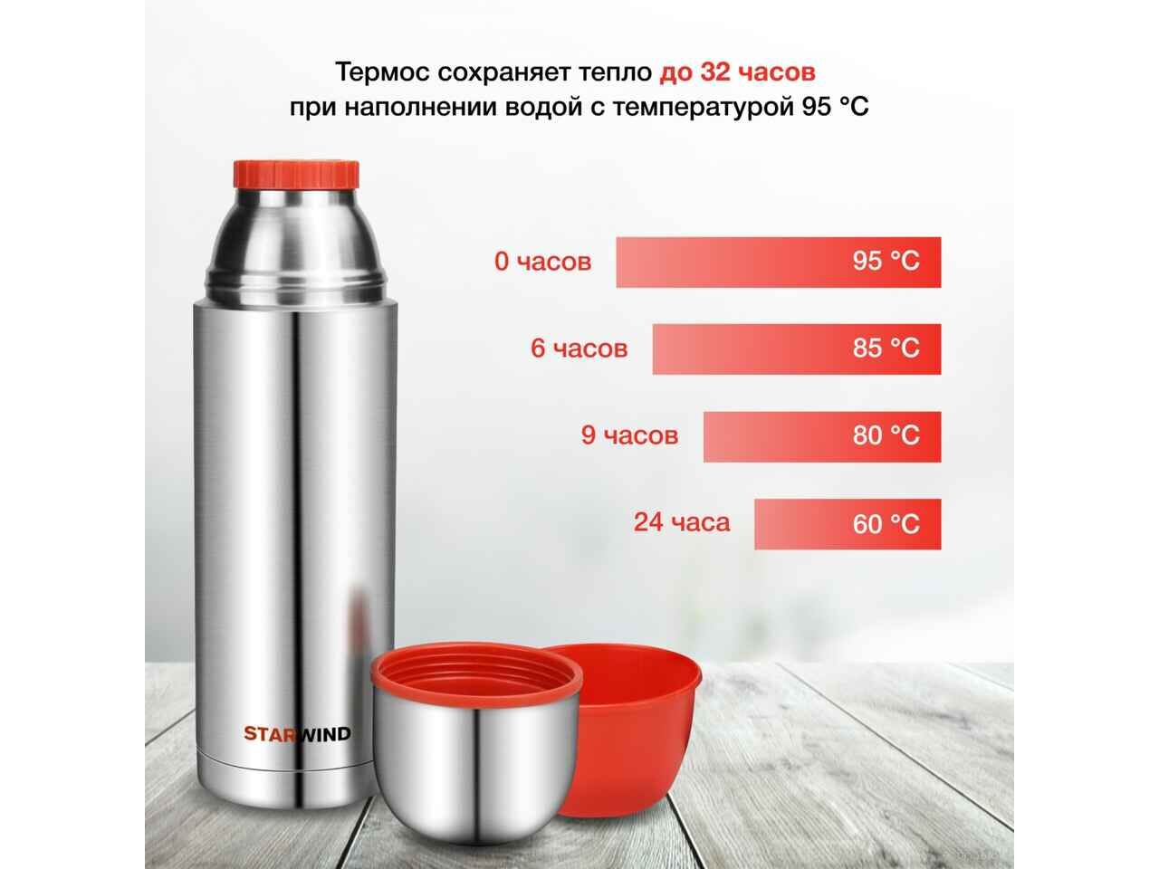 Термос StarWind 20-1000 1л (серебристый/красный)