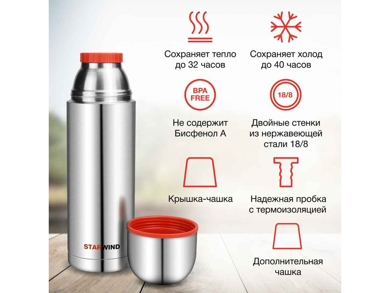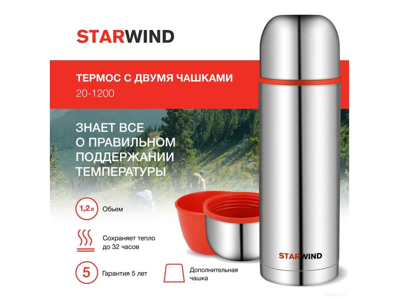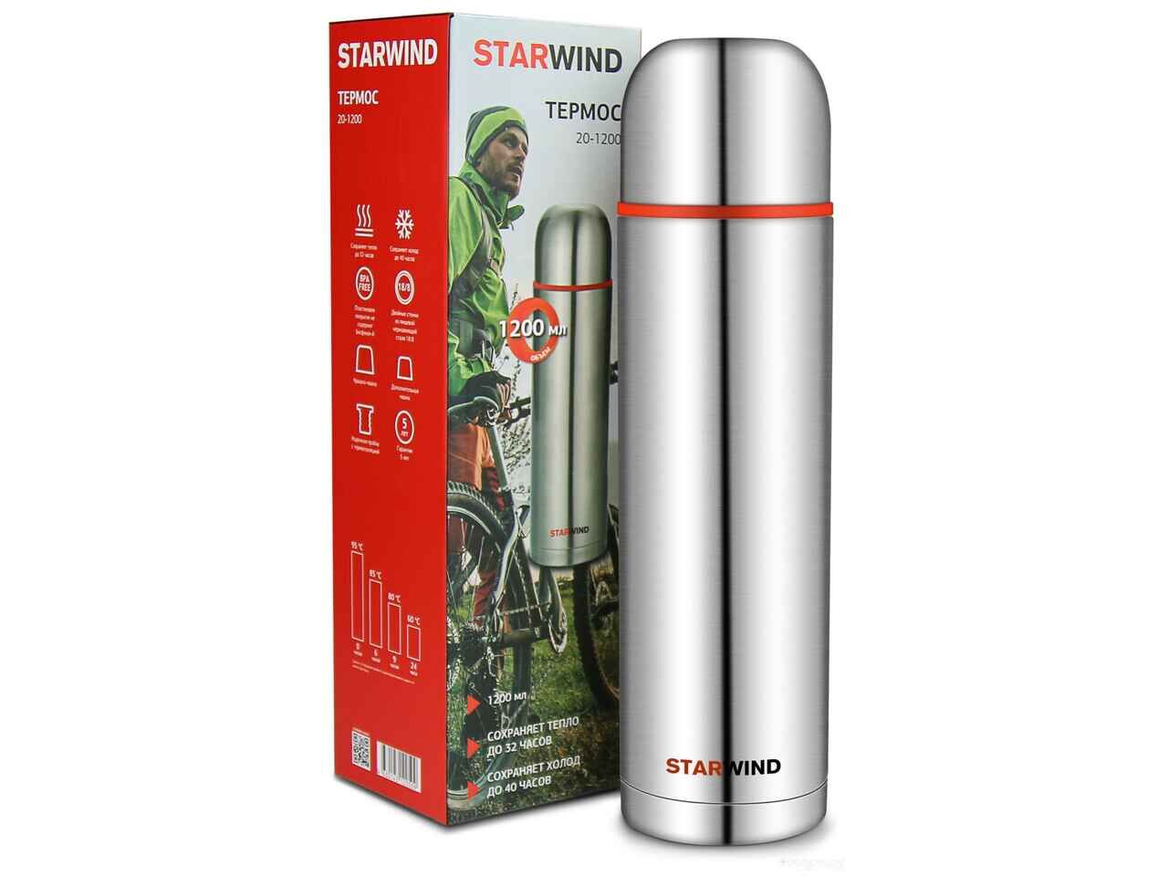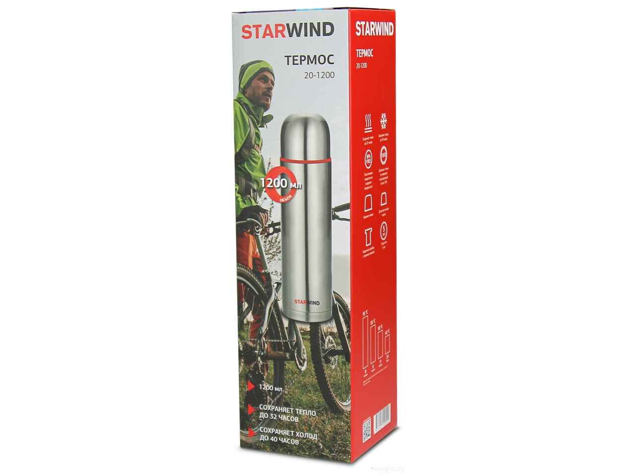 Термос StarWind 20-1200 1.2л (серебристый/красный)