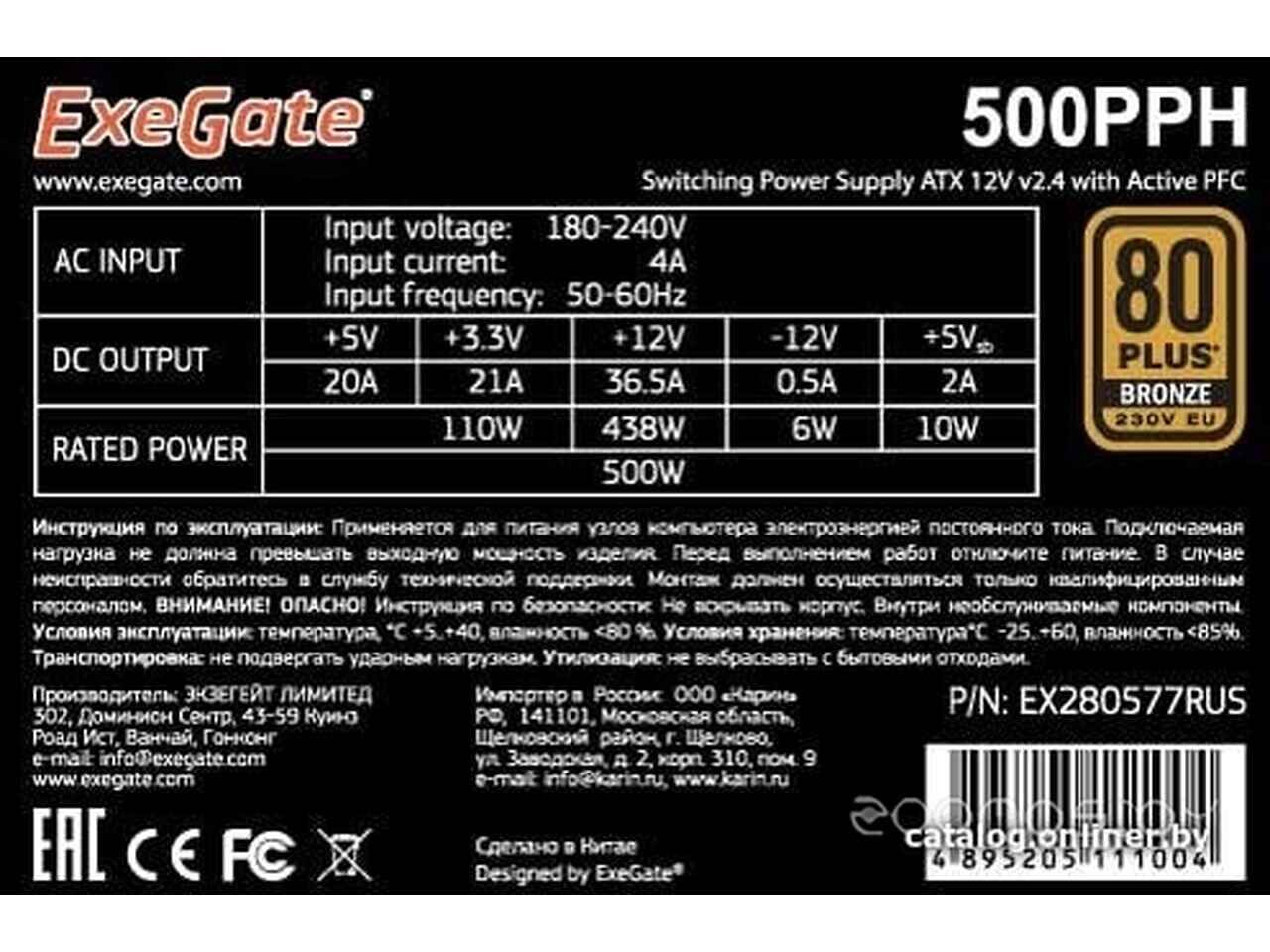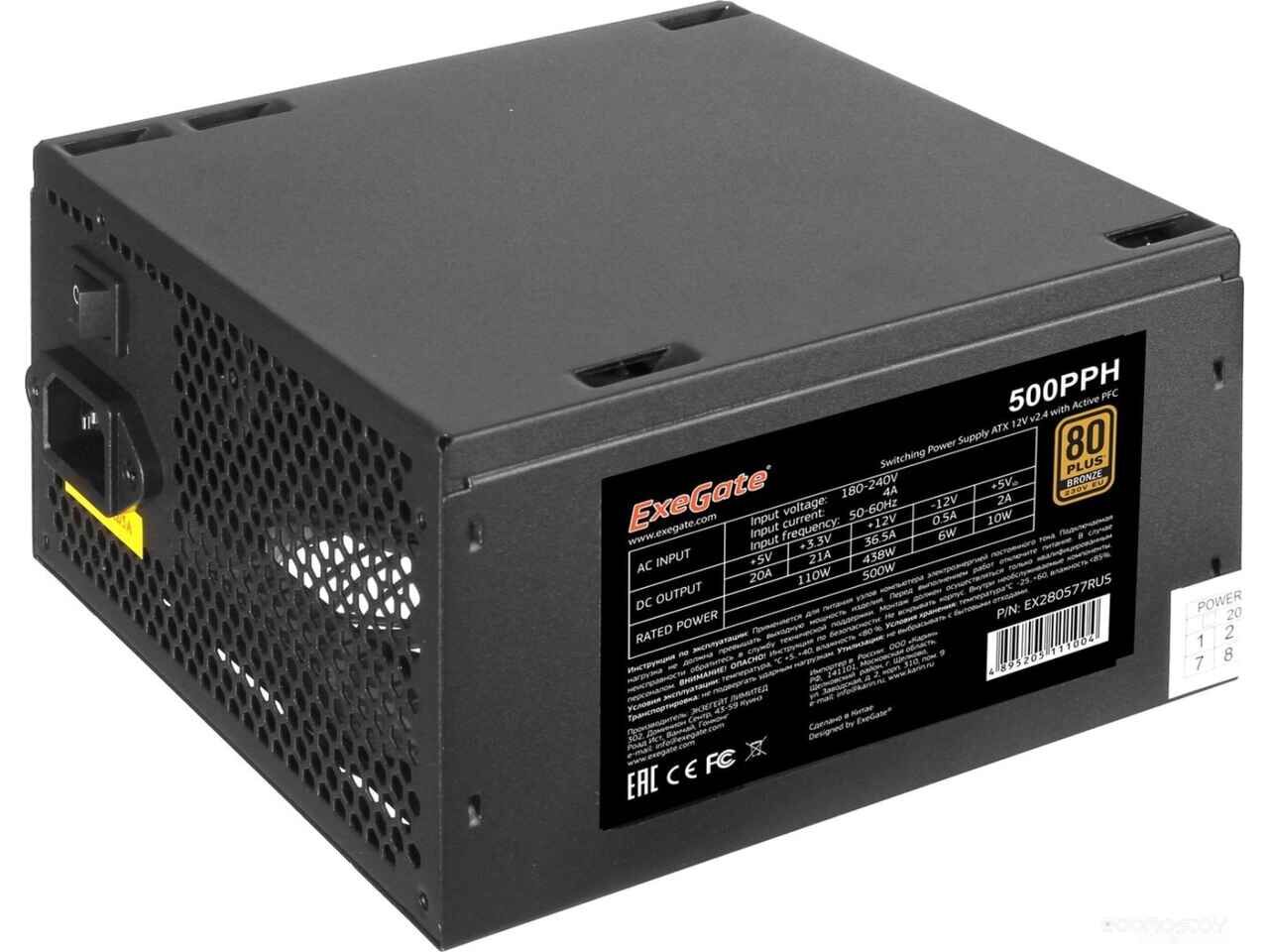 Блок питания Exegate 500PPH 80 Plus Bronze EX280577RUS-S