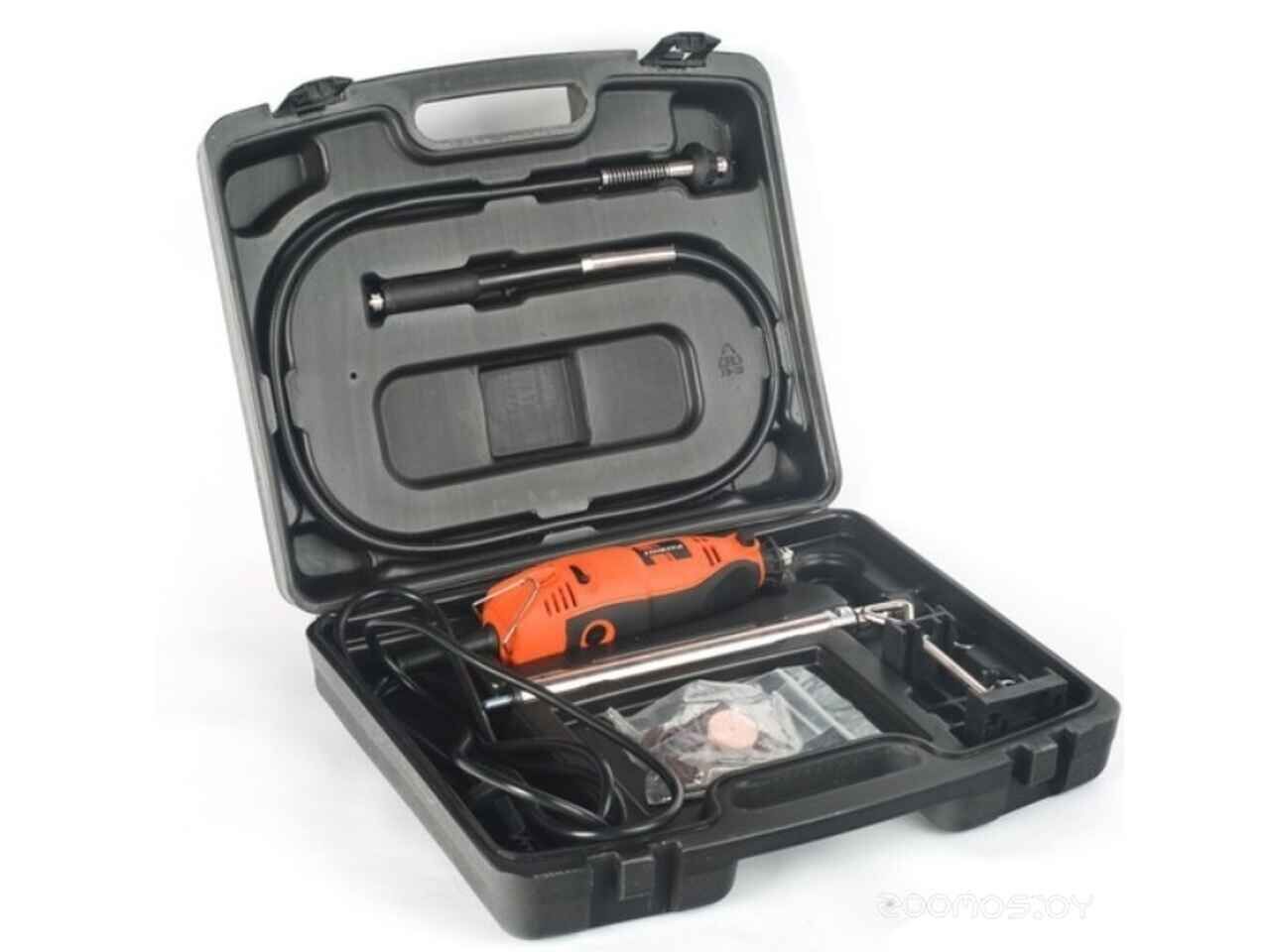 - Комплектация Державка, Насадка для шлифовальной ленты, Отрезной диск, Полировальный круг, Сверло по металлу, Точильный камень, Фрезерная шарошка, Шлифовальная лента, Щетинная щетка, Щетка проволочная, держатель, ключ для цангового патрона, подставка, цанговые патроны