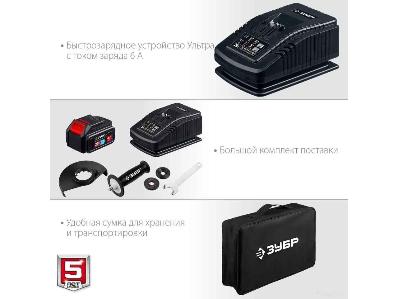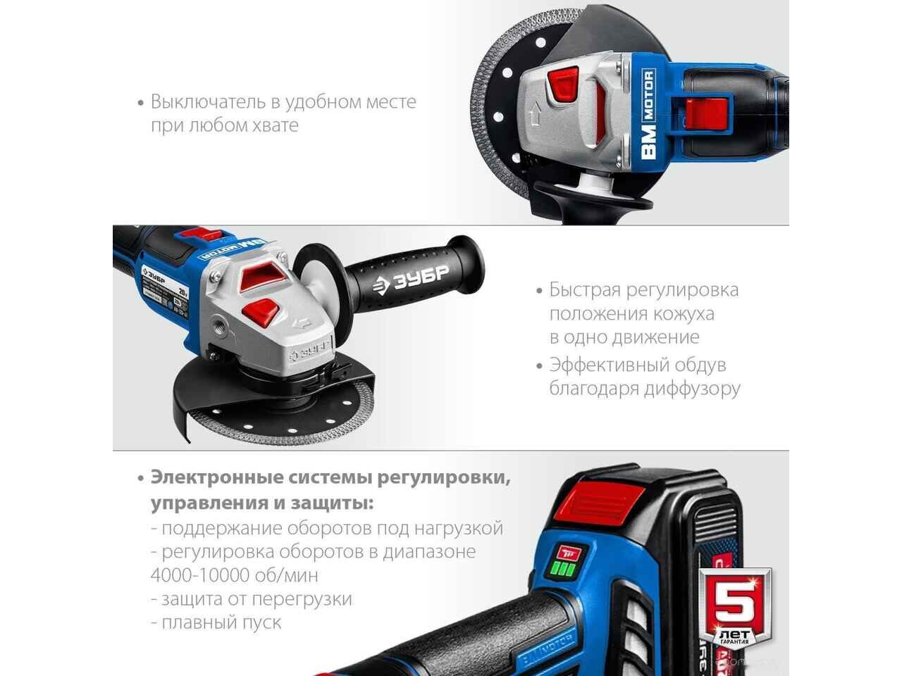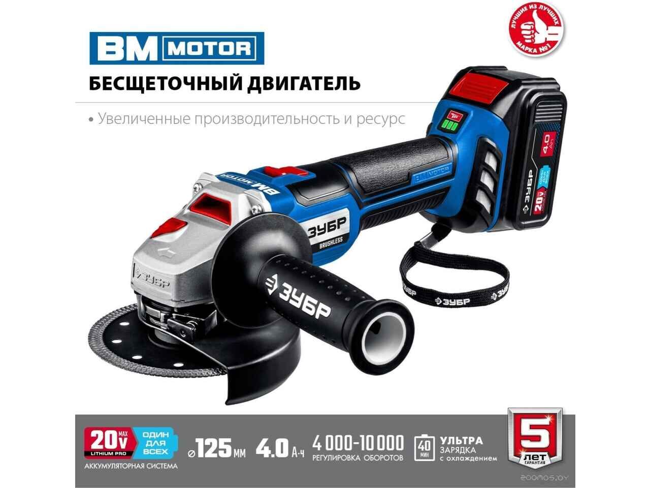Угловая шлифмашина ЗУБР Профессионал AB-125-41 (с 1-м АКБ, сумка)