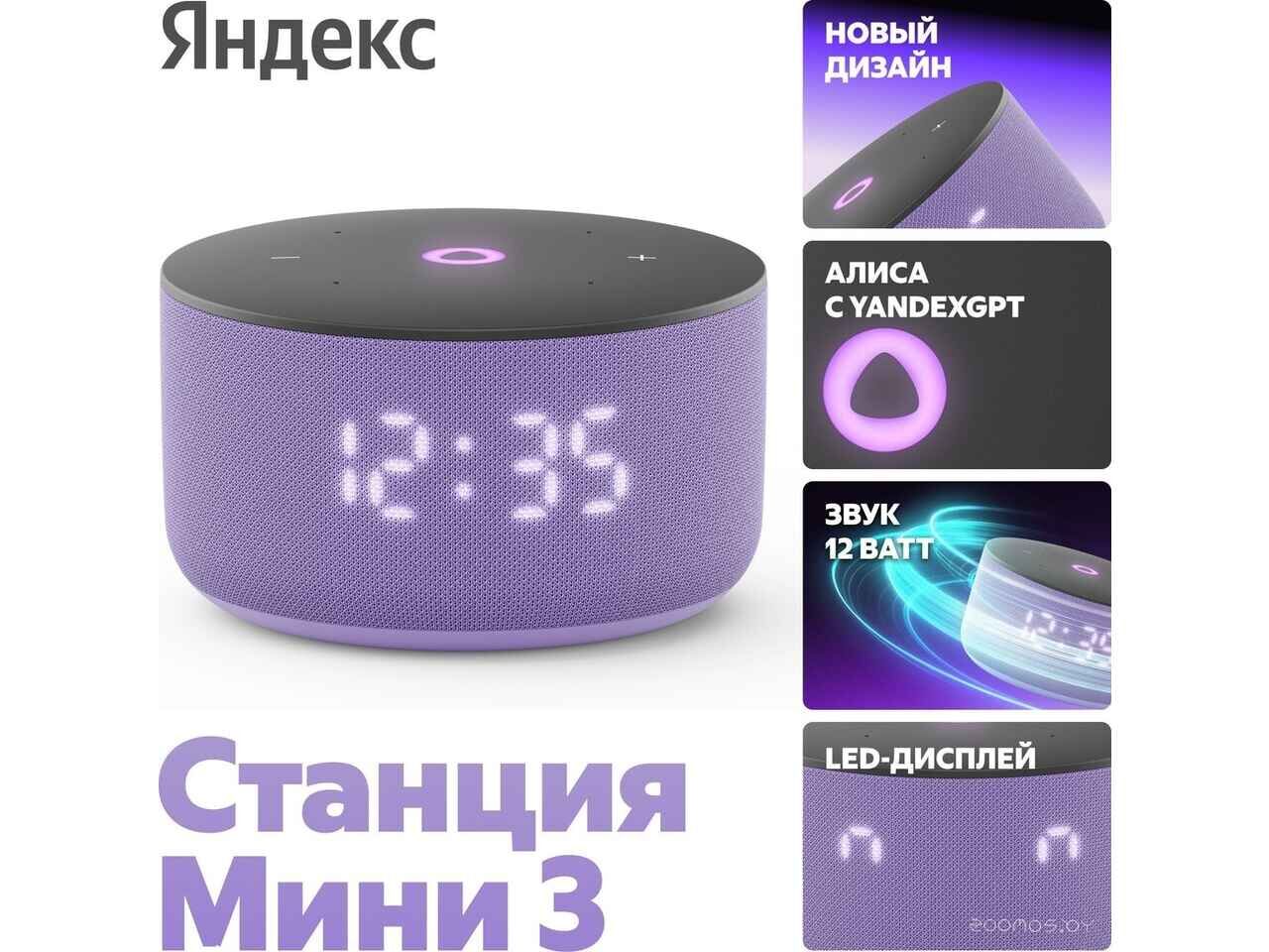 Умная колонка Яндекс Станция Мини 3 с часами (фиолетовый)