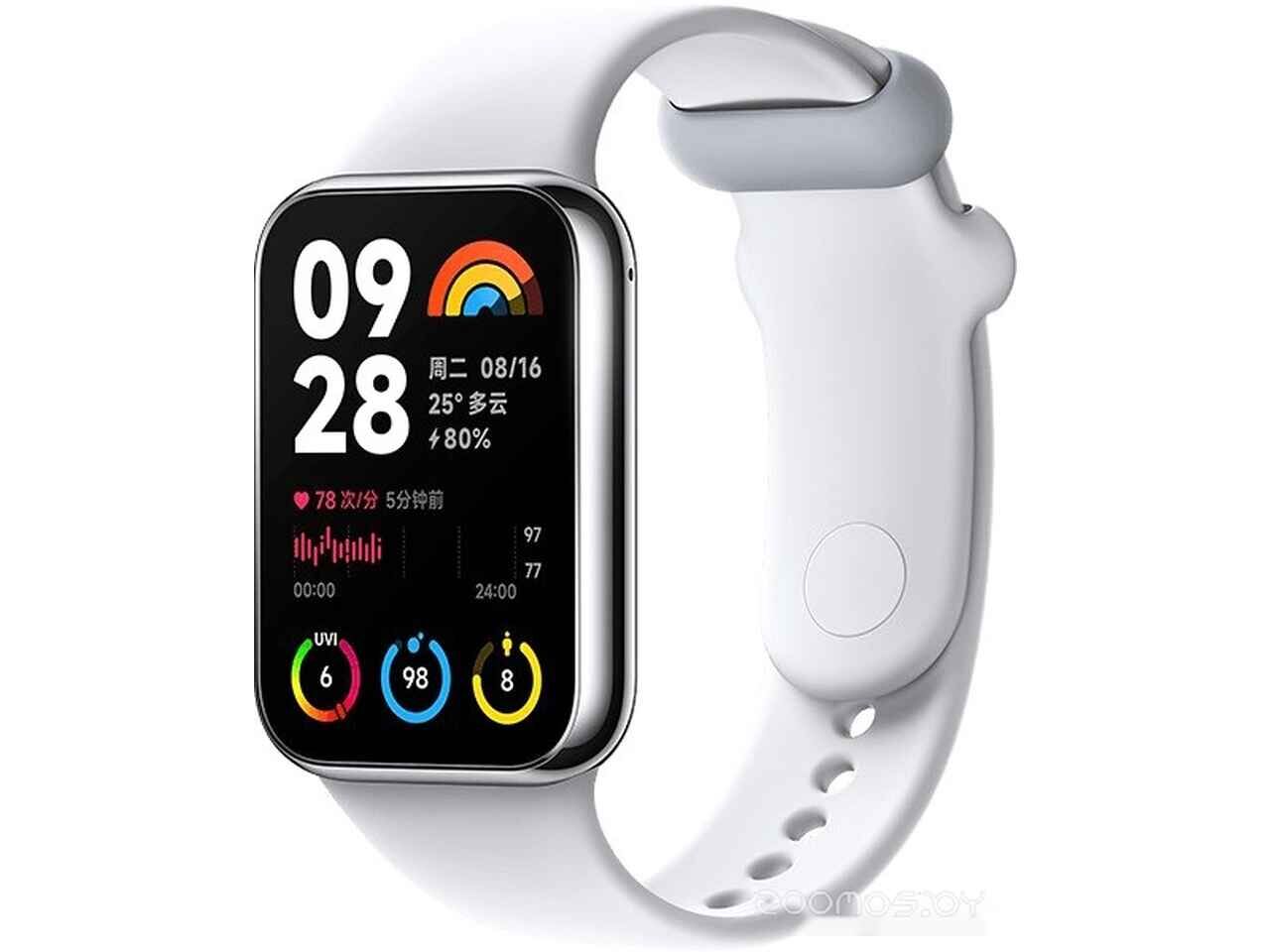 Фитнес-браслет Xiaomi Smart Band 8 Pro M2333B1 без NFC (серебристый, с белым силиконовым ремешком, международная версия)