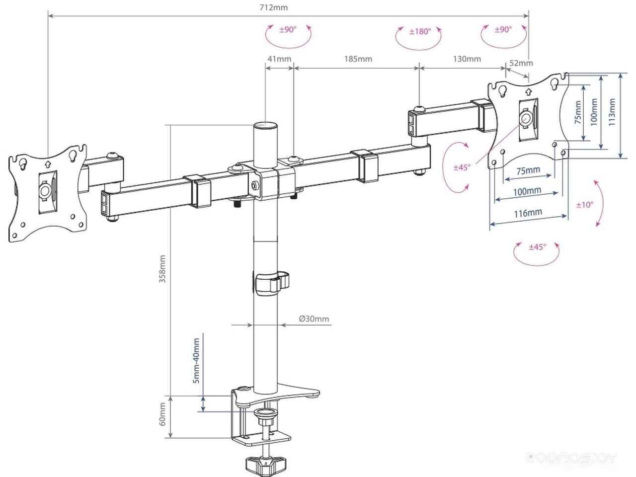 - Совместимость с креплением VESA 100x100, 75x75