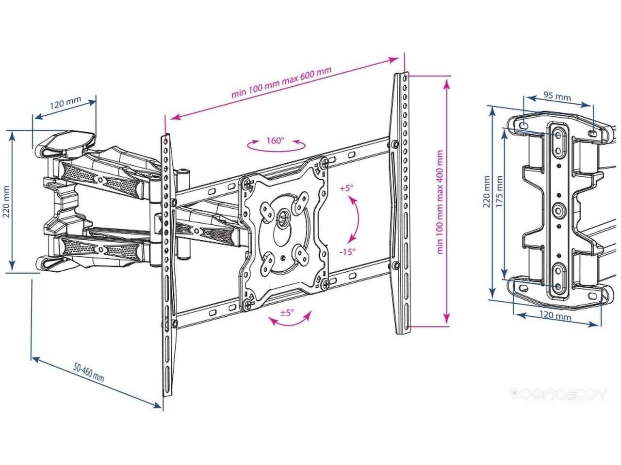 - Совместимость с креплением VESA 100x100, 200x100, 200x200, 200x300, 300x300, 400x200, 400x300, 400x400, 600x200, 600x400