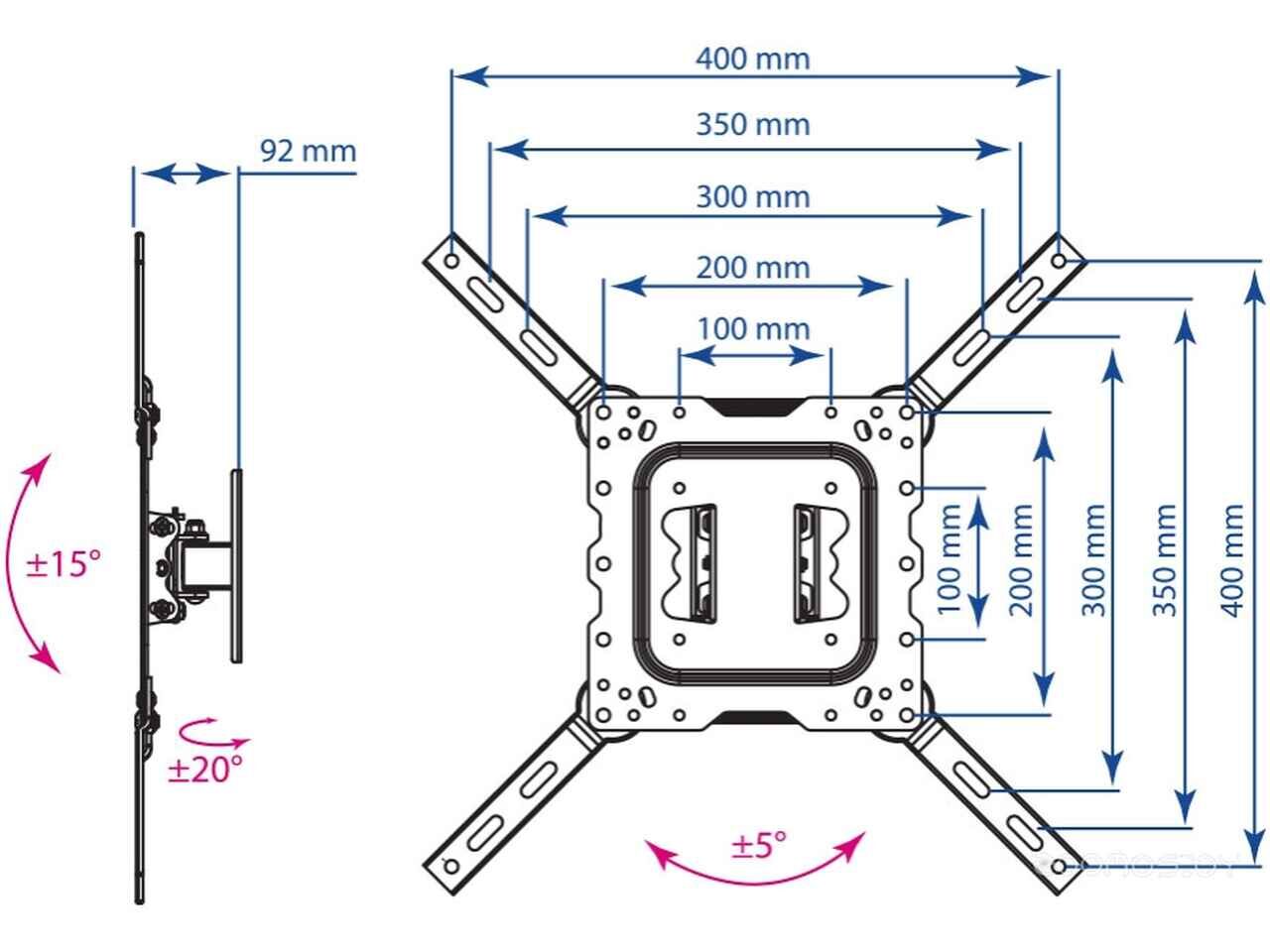 - Совместимость с креплением VESA 100x100, 200x100, 200x200, 200x300, 300x300, 400x200, 400x300, 400x400