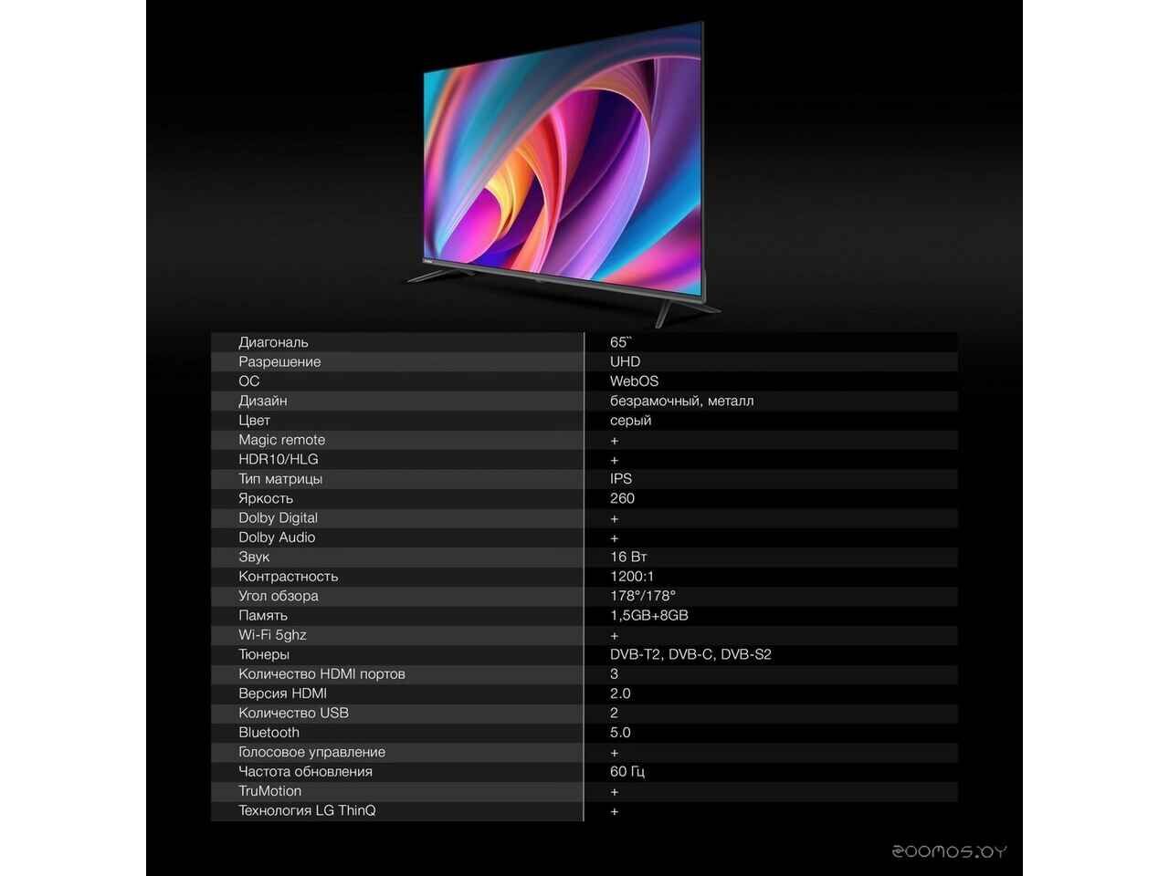 - Диагональ 65 "