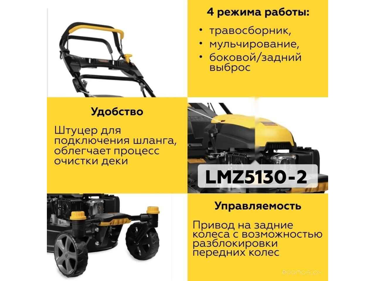 - Тип скашивания выброс травы, мульчирование, сбор в травосборник