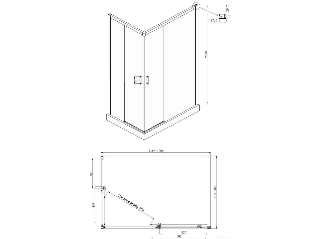 - Ширина входа 56 см