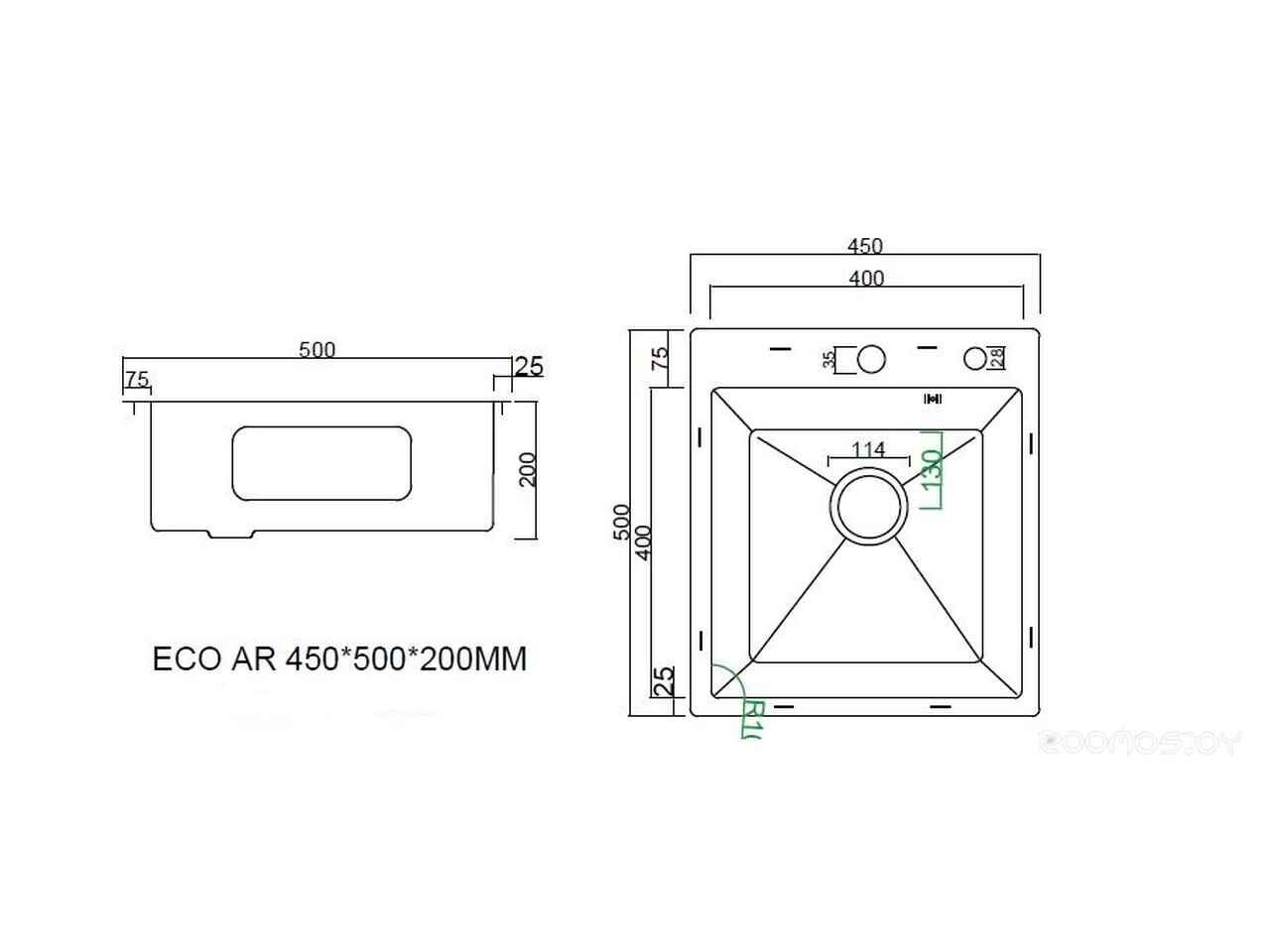 - Глубина мойки 50 см