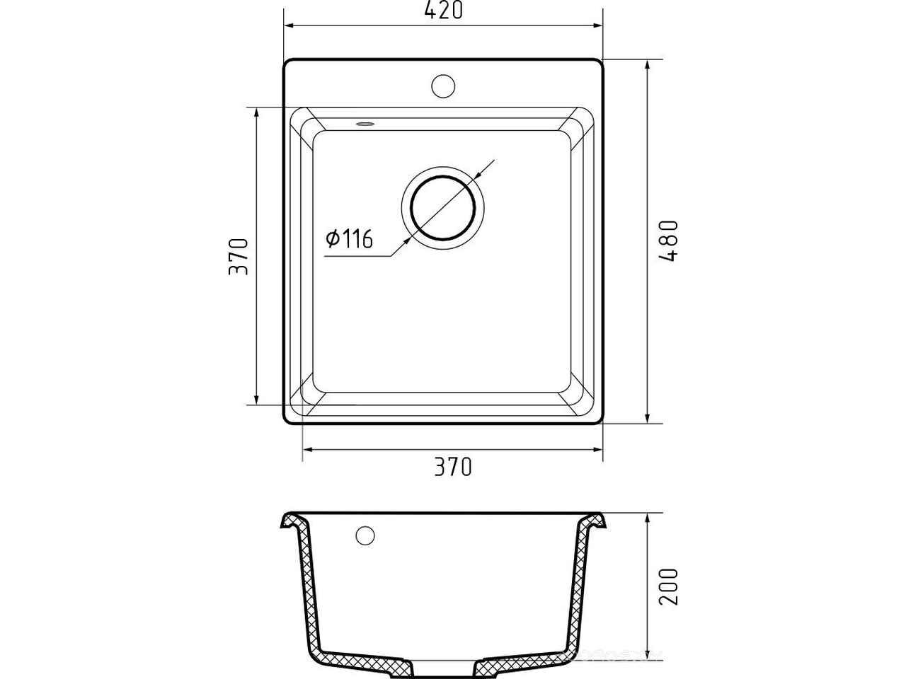 - Ширина мойки 42 см