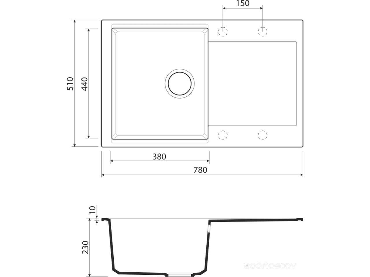 - Диаметр сливного отверстия 3.5 мм