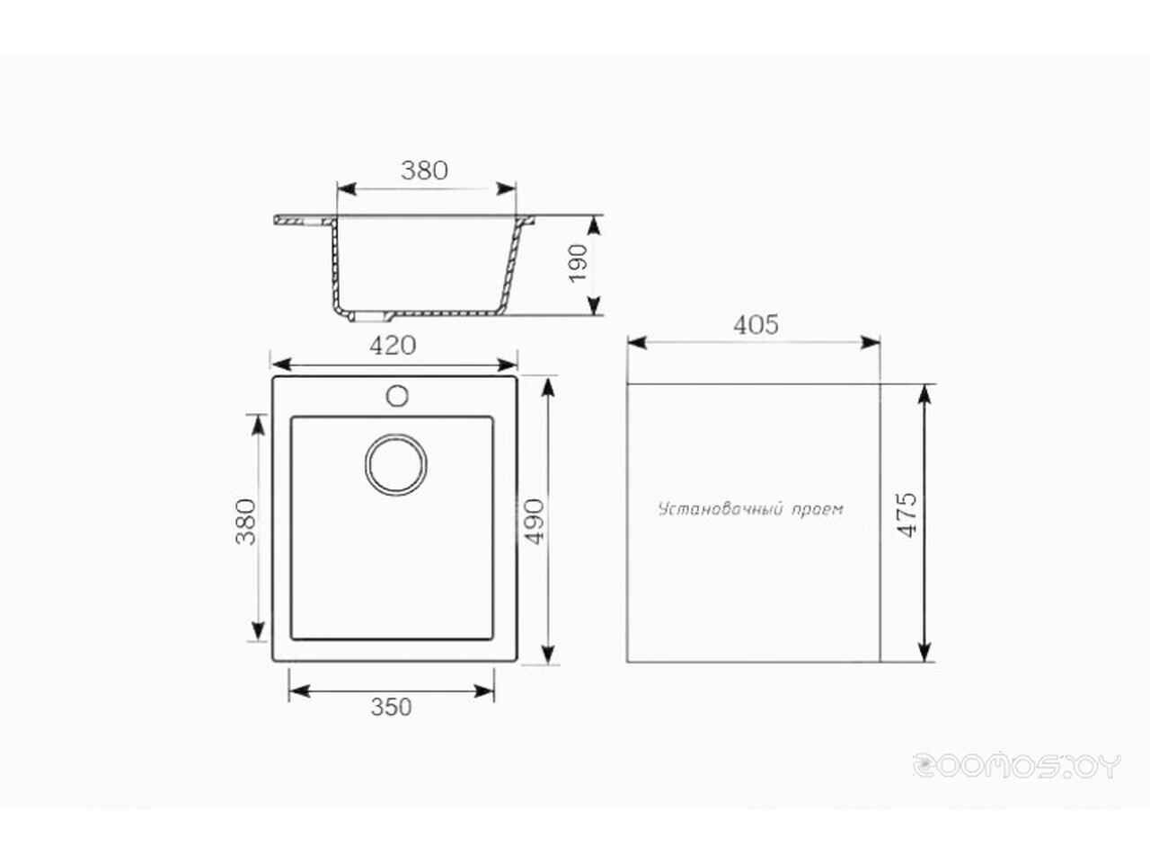 - Глубина монтажного отверстия под мойку 47.5 см