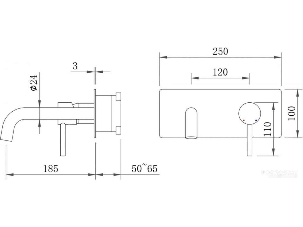 - Длина излива 185 мм
