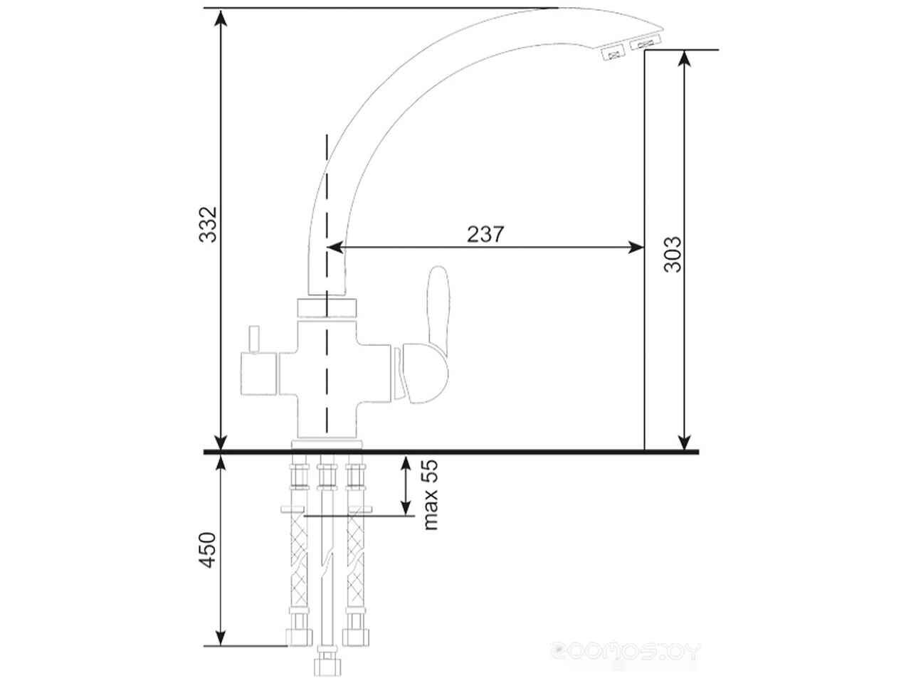 - Высота излива 303 мм