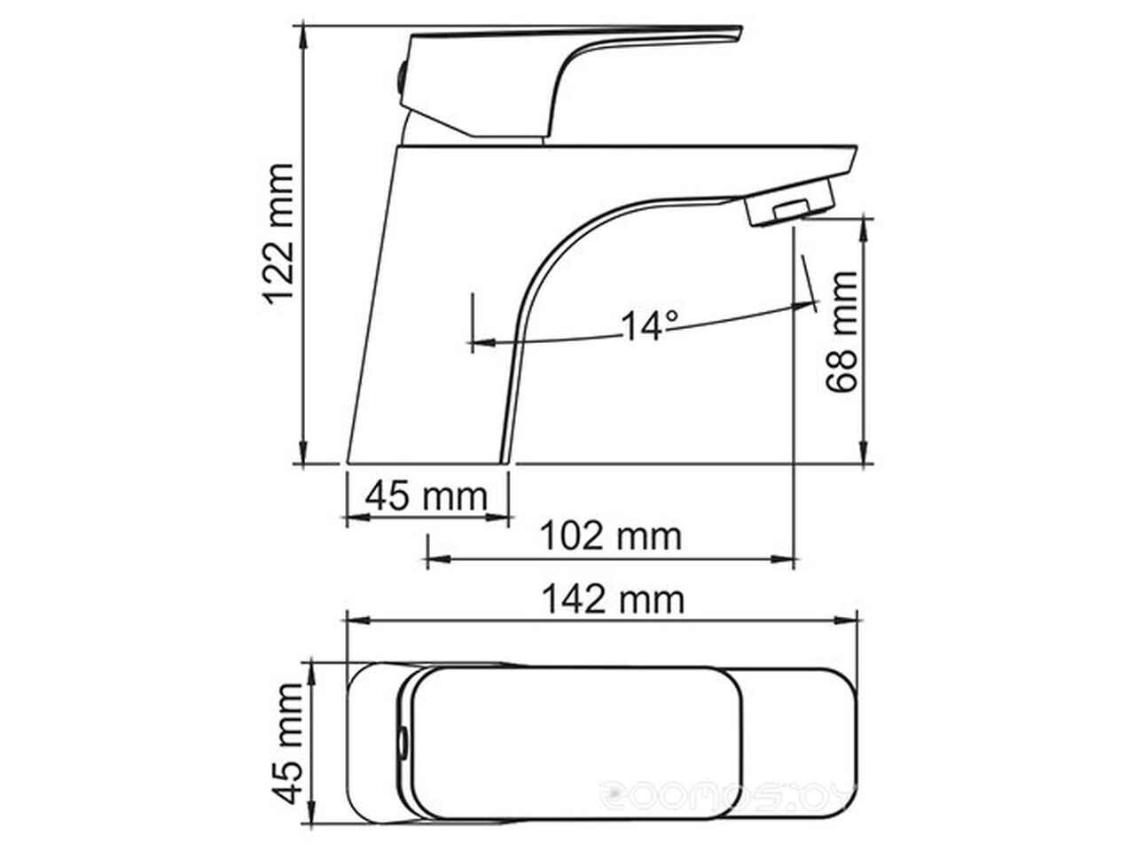 - Длина излива 102 мм
