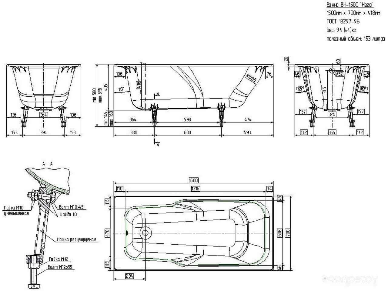 - Объем 153 л