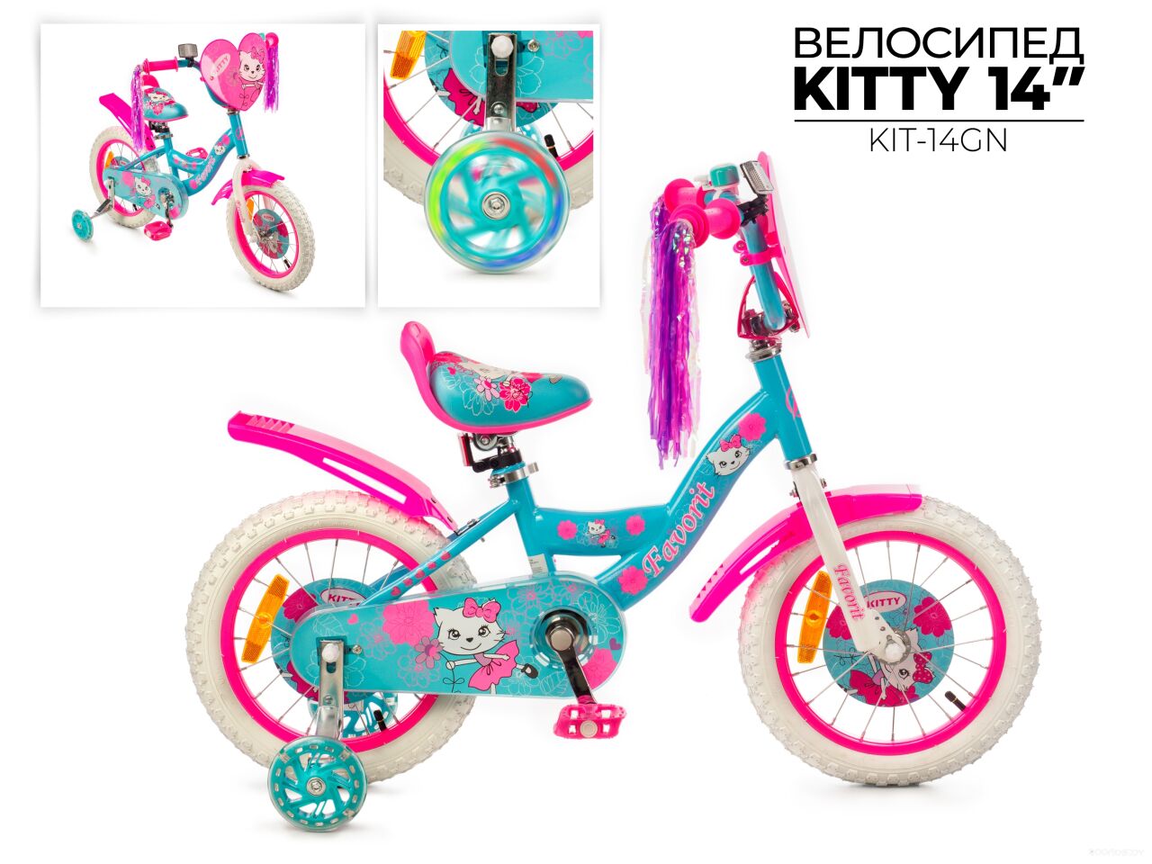 Детский велосипед Favorit Kitty 14 (бирюзовый/розовый) KIT-14GN