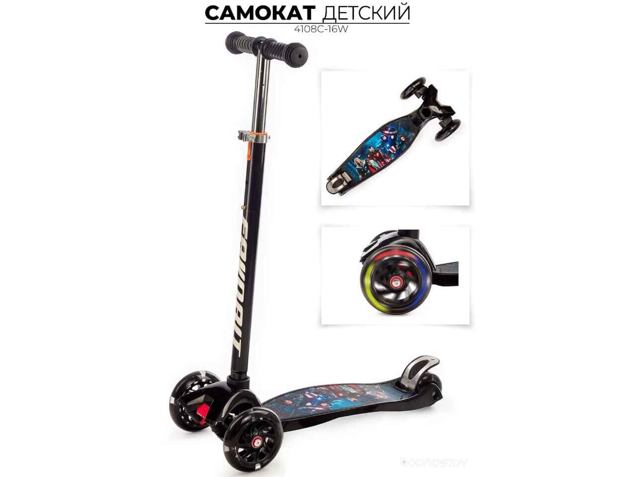 Самокат Favorit 4108C-16W MAXI черный Мстители