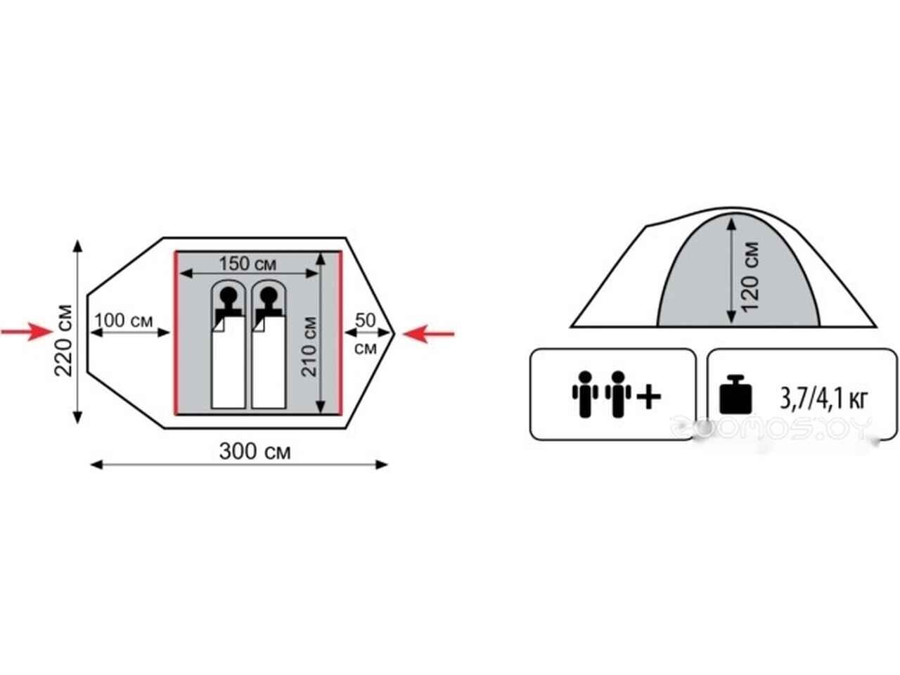 - Длина внешней палатки 300 см