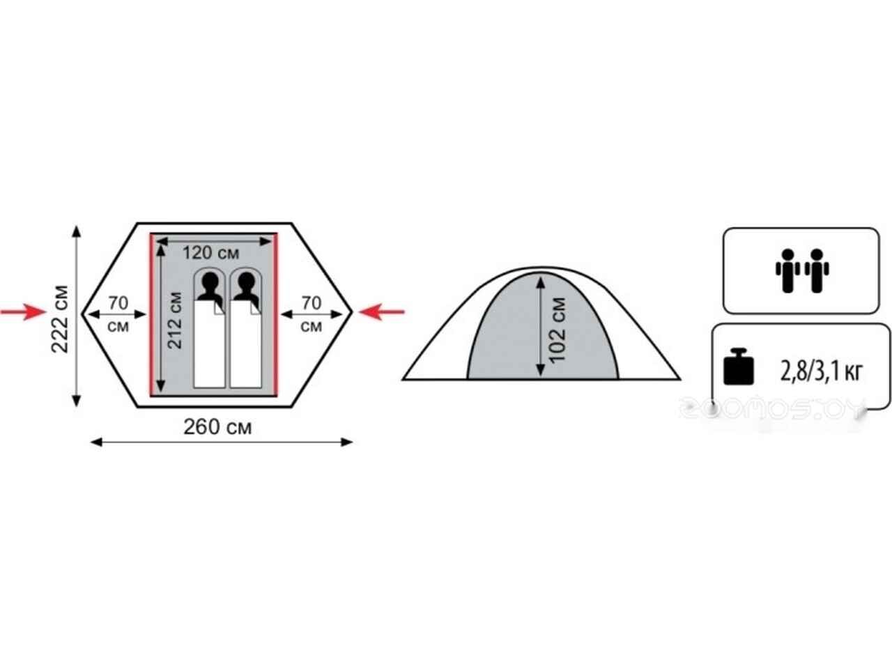 - Материал внутренней палатки полиэстер
